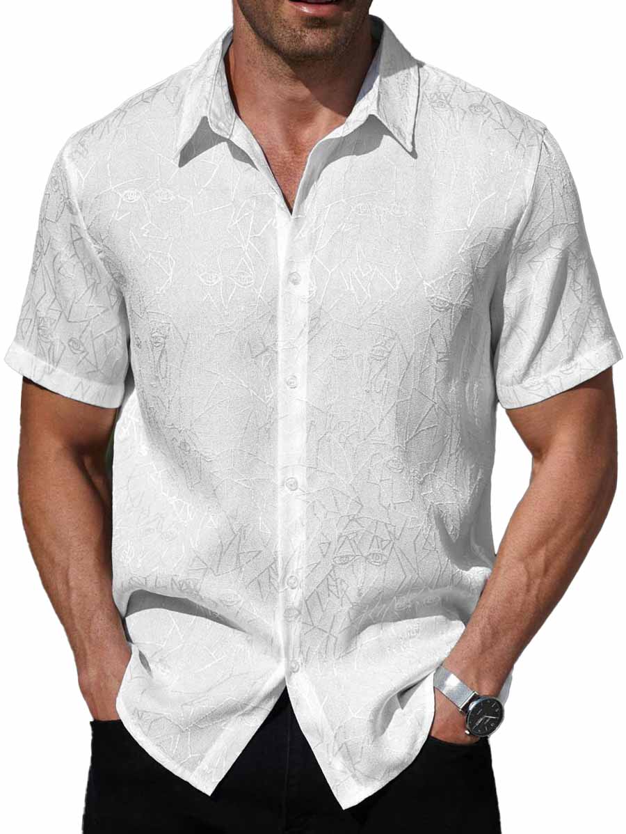 Men's Casual Daily Solid Color Texture Solid Color Short-sleeved Shirt$39.99 USD -