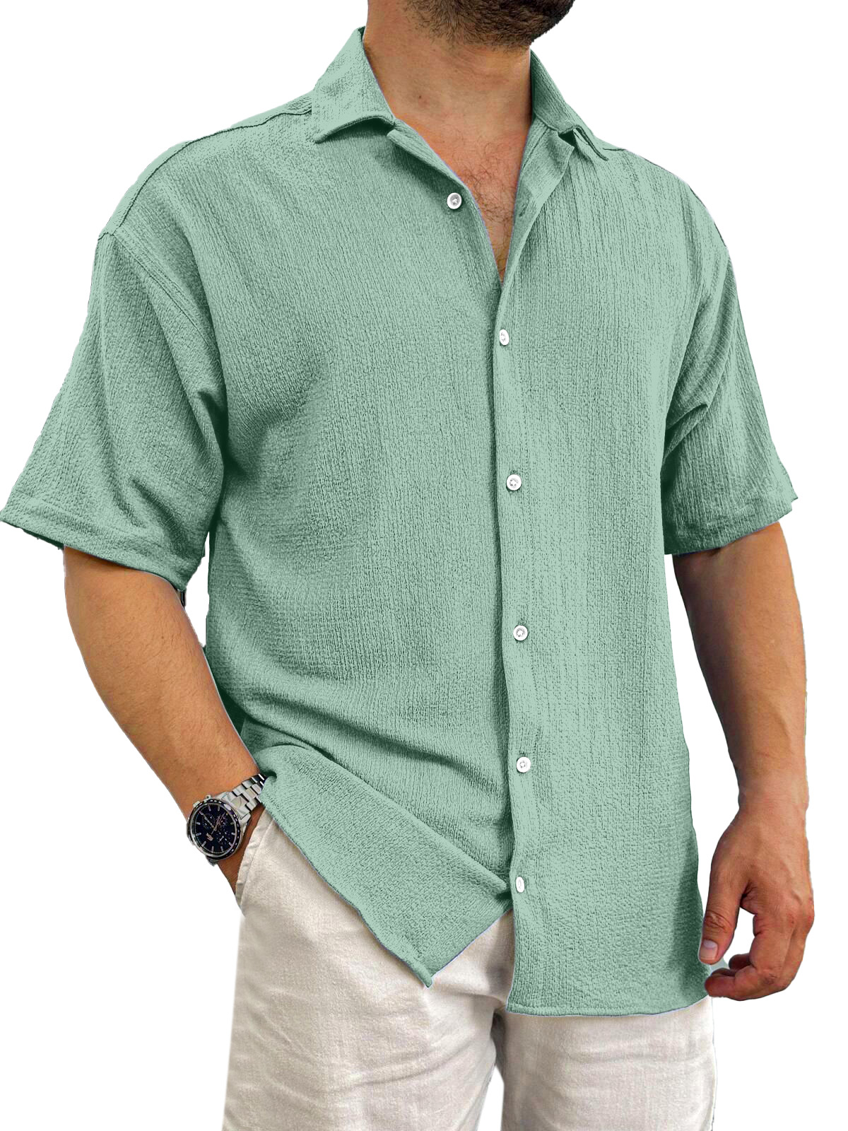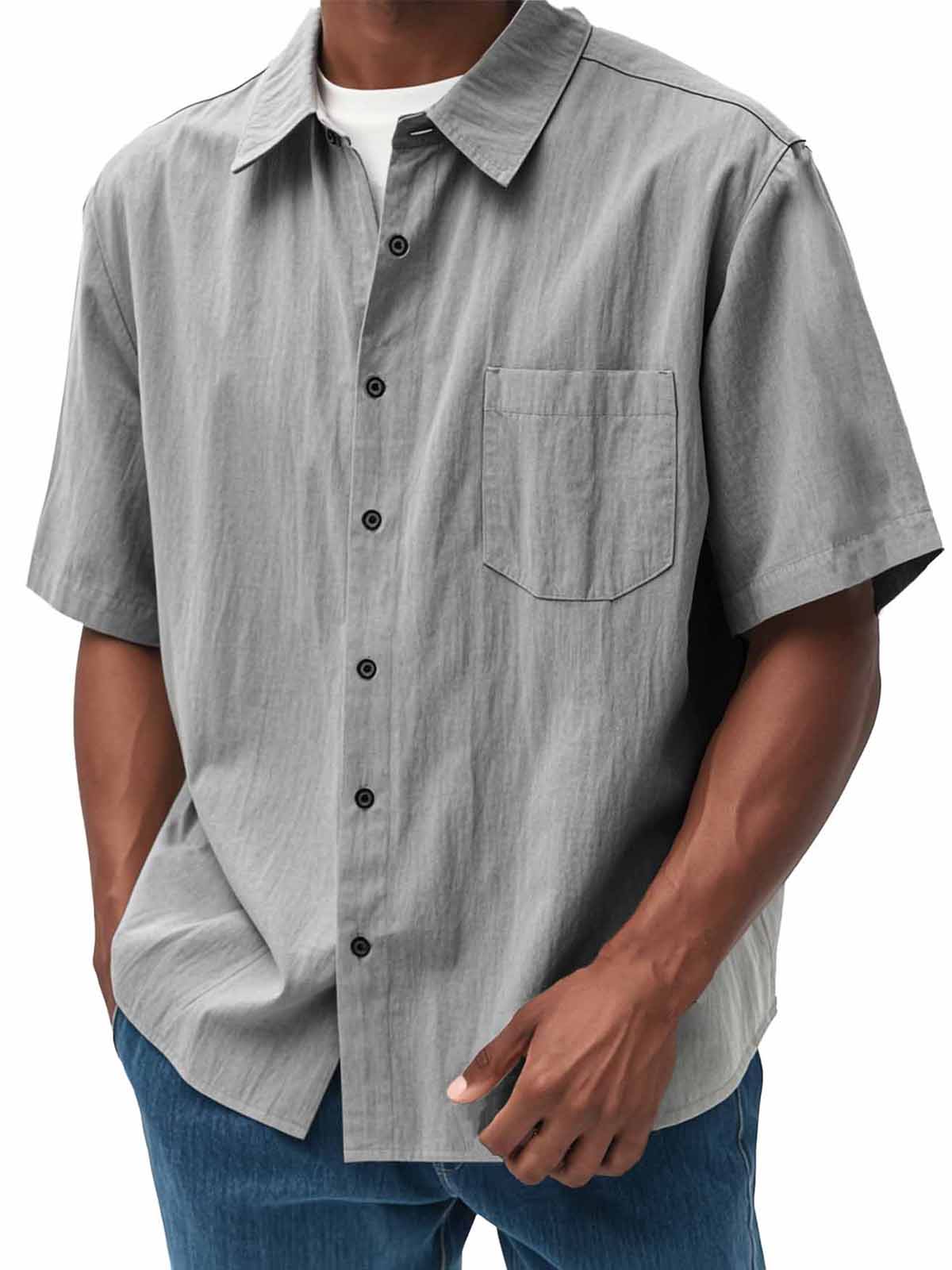 Men's Casual Simple Daily Solid Color Texture Solid Color Short-sleeved Shirt$39.99 USD -