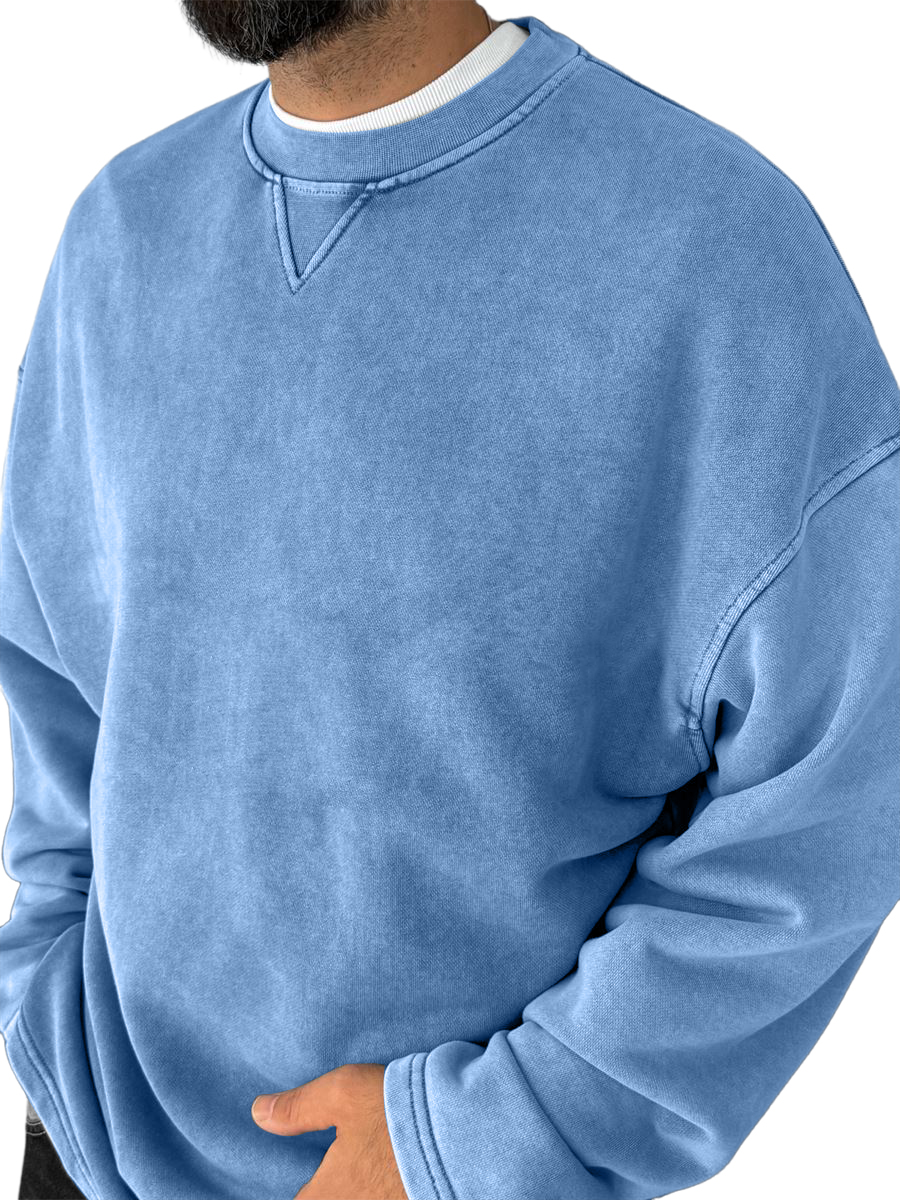 Men's Vintage Washed Cotton Round Neck Long-sleeved Sweatshirt$42.99 USD -