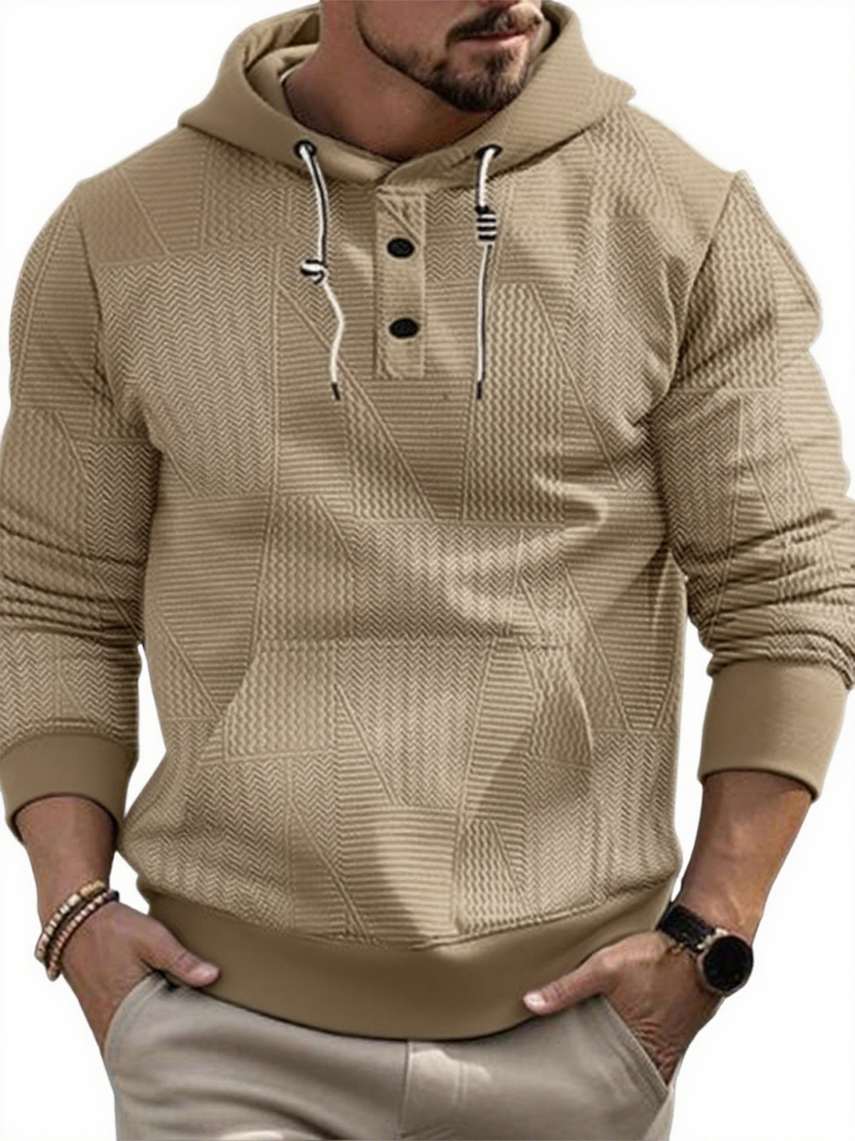 Men's Retro Simple Solid Color Jacquard Long-sleeved Hooded Sweatshirt$42.99 USD -