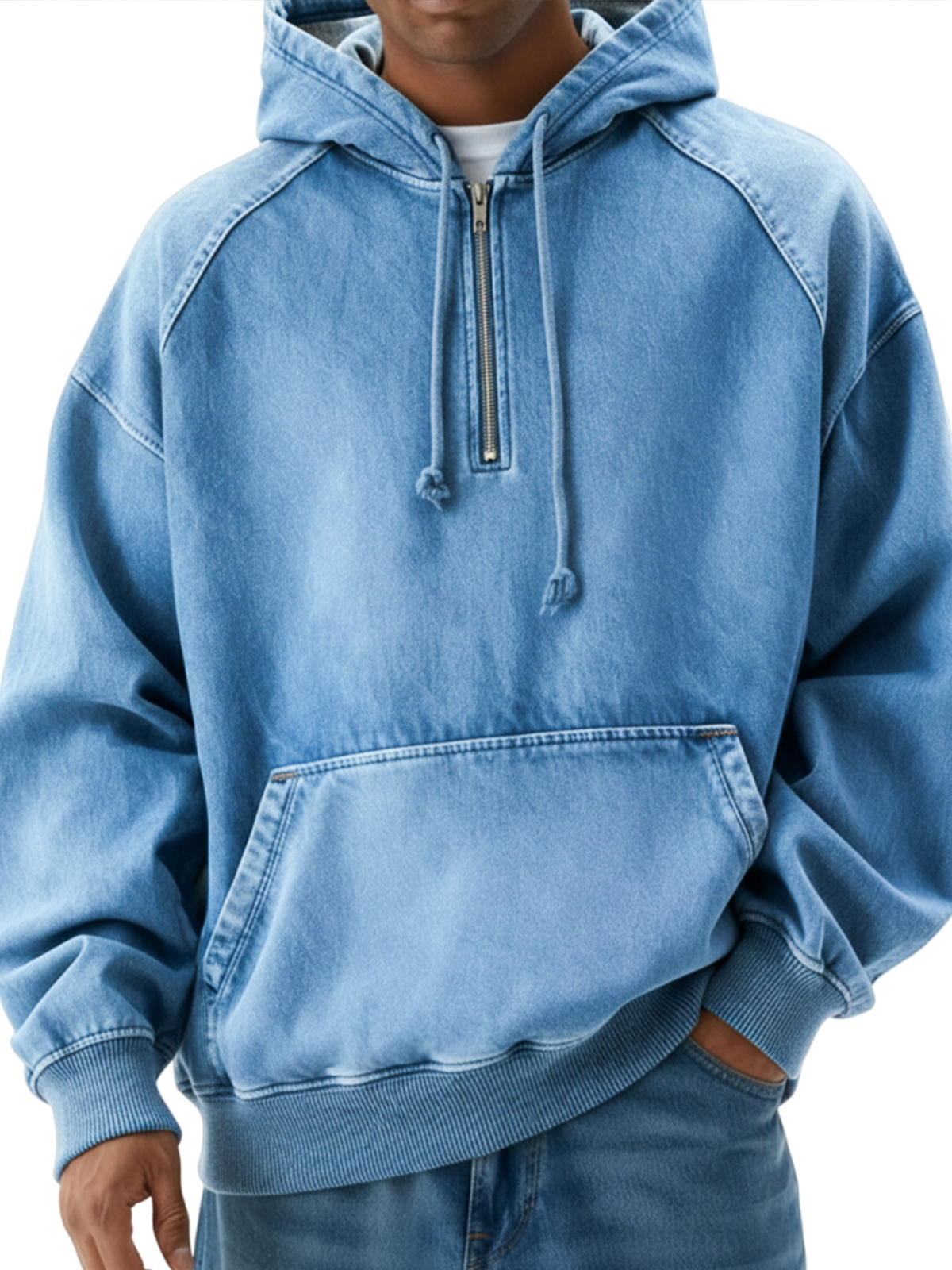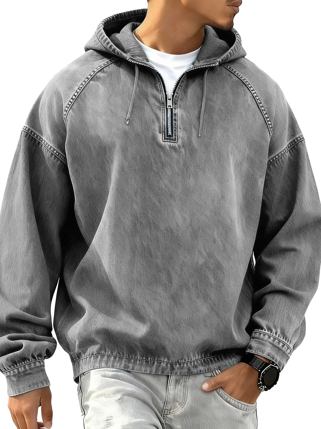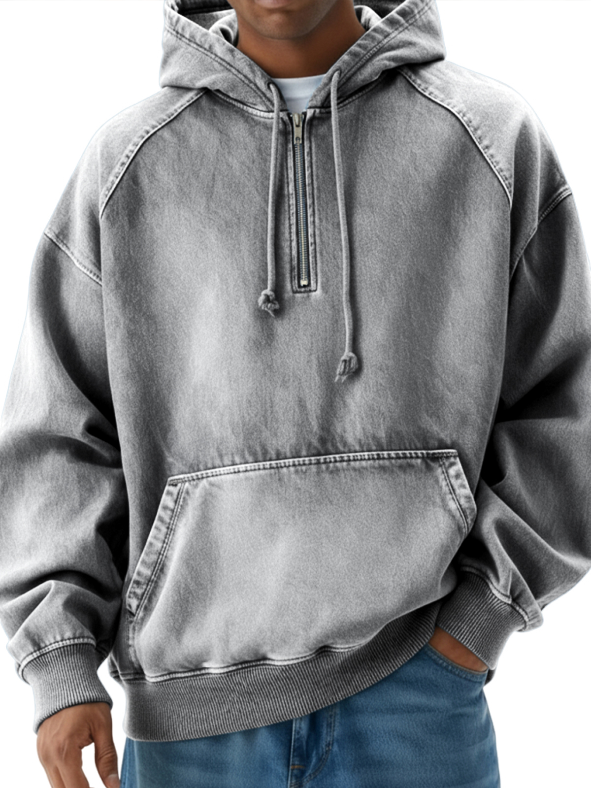 Men's Vintage Distressed Raglan Quarter-zip Pullover Hoodie$51.99 USD -