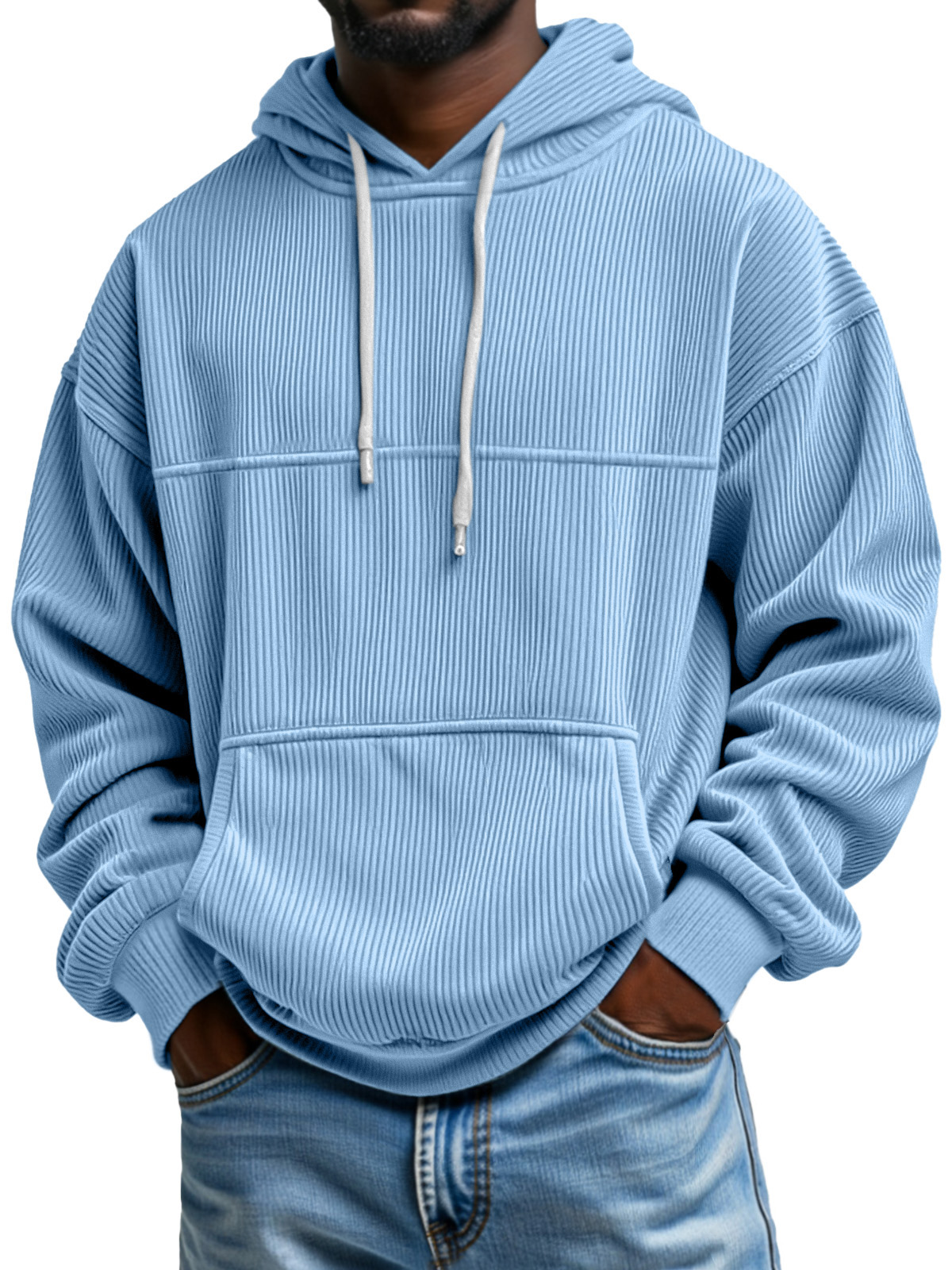Men's Simple And Comfortable Vertical Pit Striped Loose Hooded Sweatshirt$49.99 USD -
