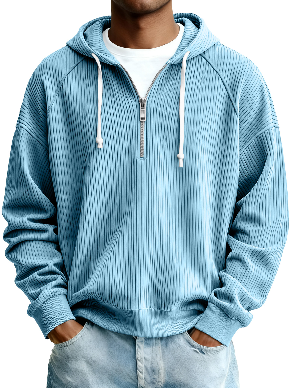 Men's Simple Ribbed Zipper Hooded Casual Sweatshirt$47.99 USD -