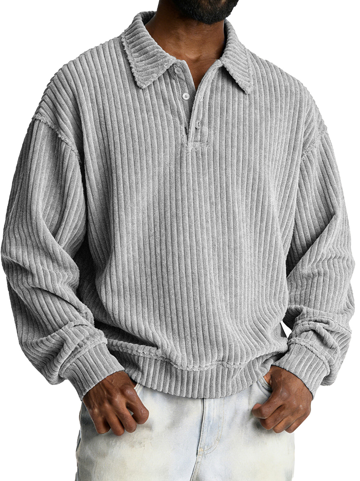 Men's Vintage Corduroy Solid Color Long-sleeved Henley Shirt$43.99 USD -