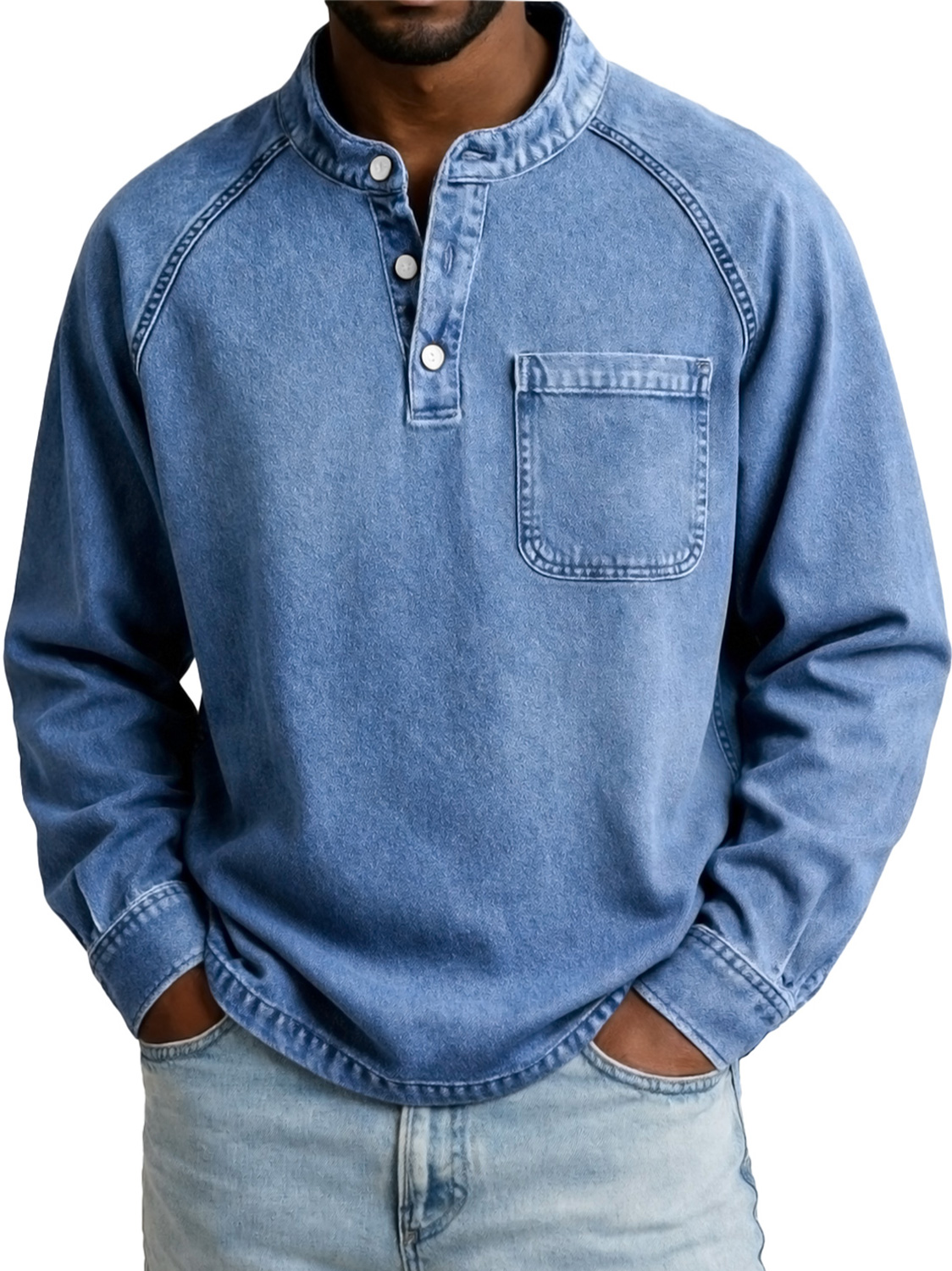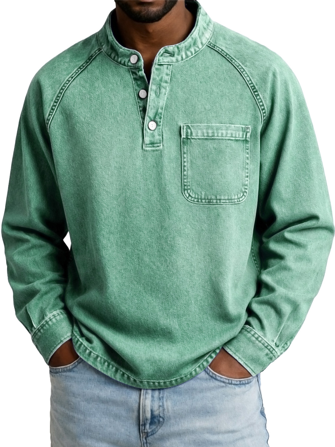 Men's Vintage Casual Raglan Sleeve Pocket Long-sleeved Henley Shirt$44.99 USD -