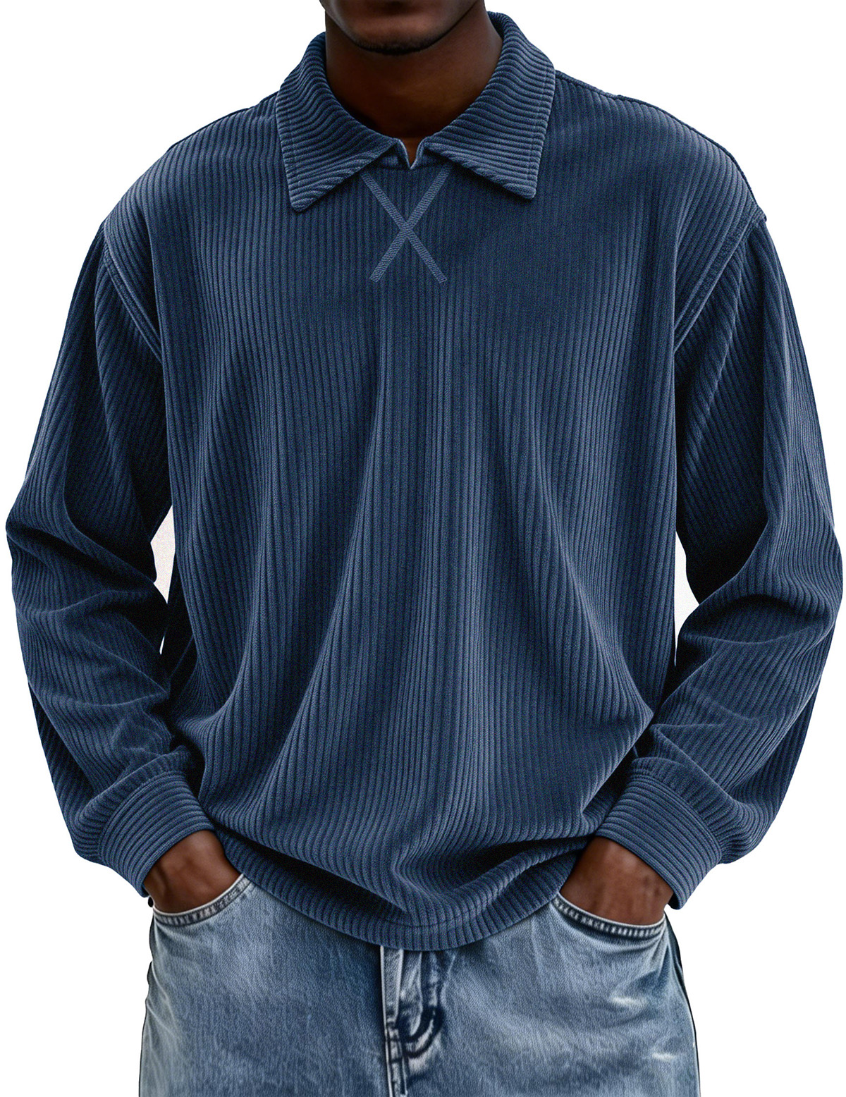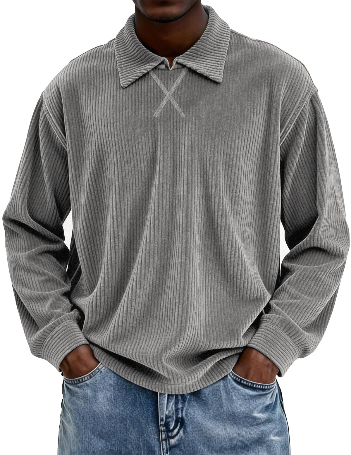 Men's Vintage Corduroy Crew Neck Zip-up Casual Long-sleeved T-shirt$42.99 USD -