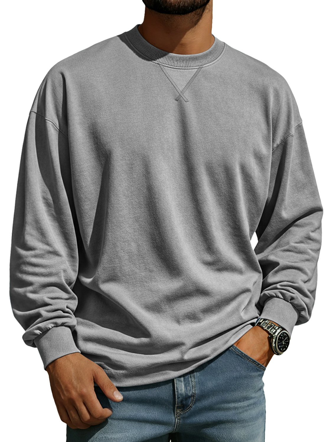 Men's Comfortable Crew Neck Long-sleeved T-shirt With A Crossover Design$42.99 USD -