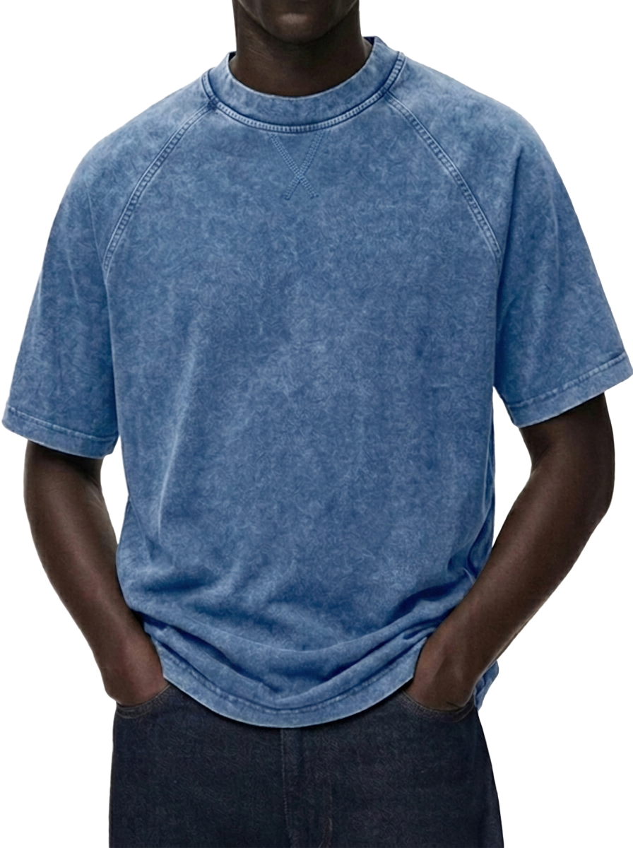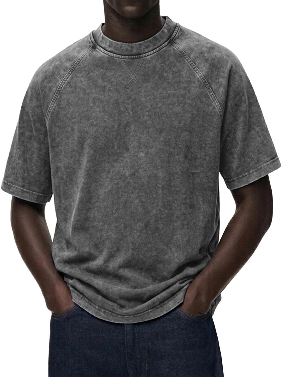 Men's Washed Distressed Raglan Sleeve Crewneck T-Shirt$38.99 USD -