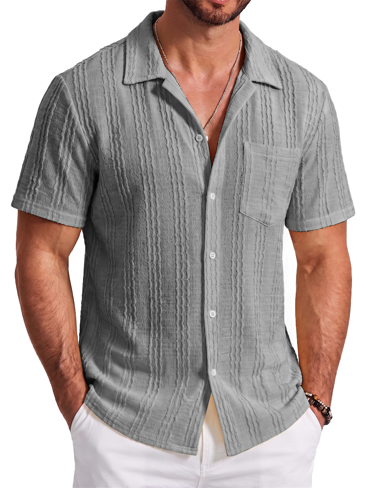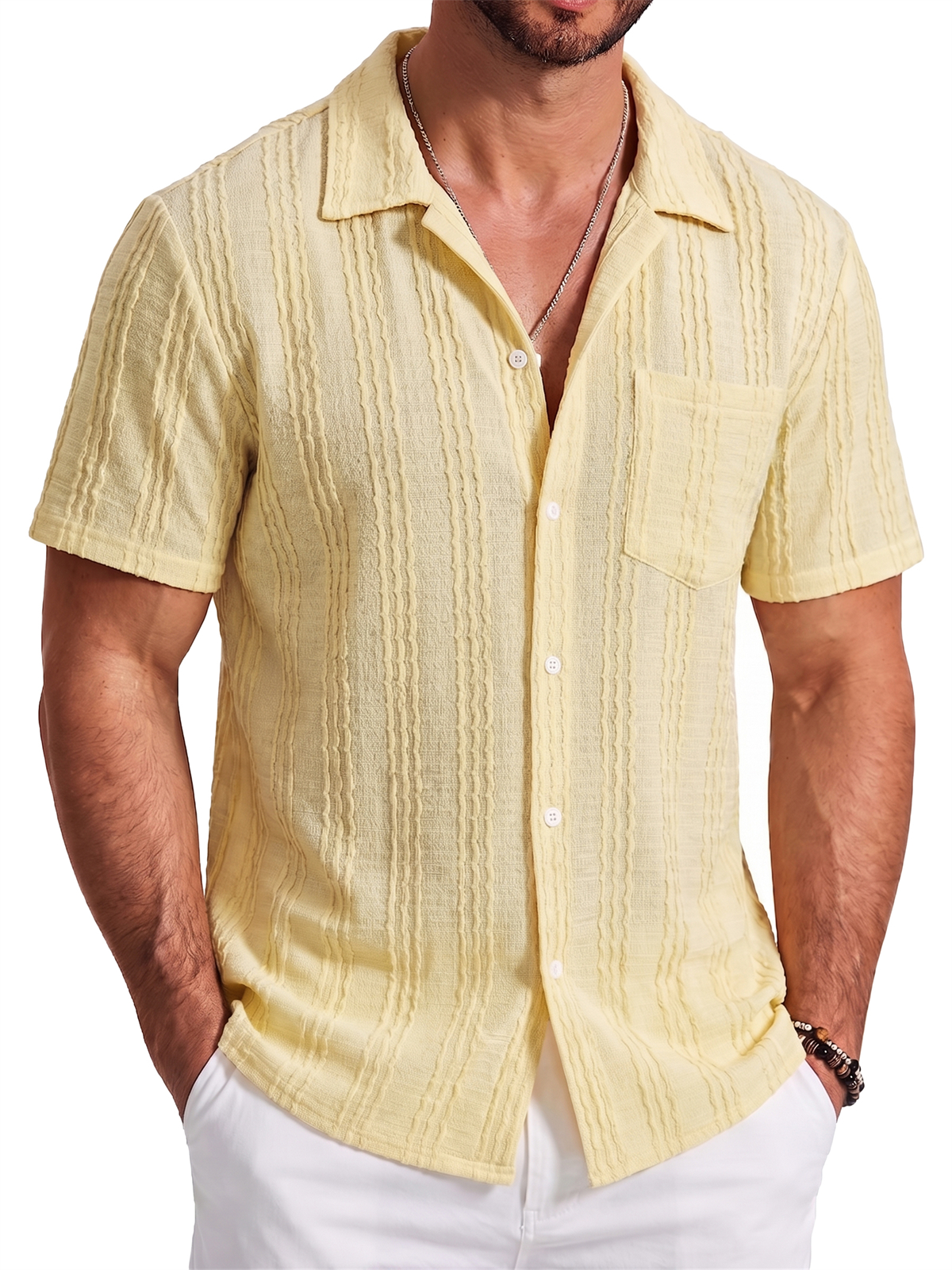 Men's Jacquard Striped Short Sleeve Shirt$38.99 USD -