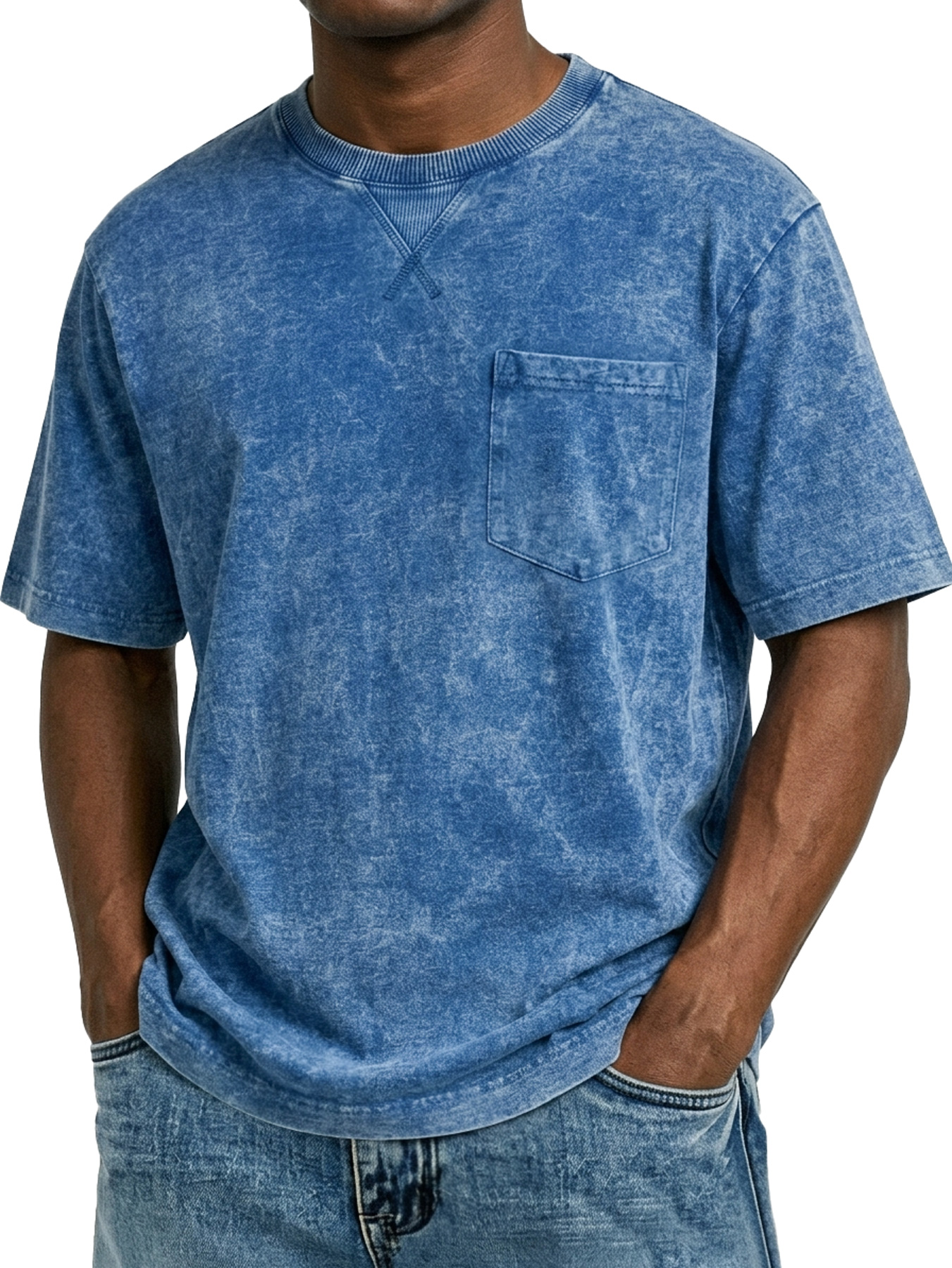 Men's Retro Cross-Strip Design Casual Crew Neck Pocket Short-Sleeve T-Shirt$38.99 USD -