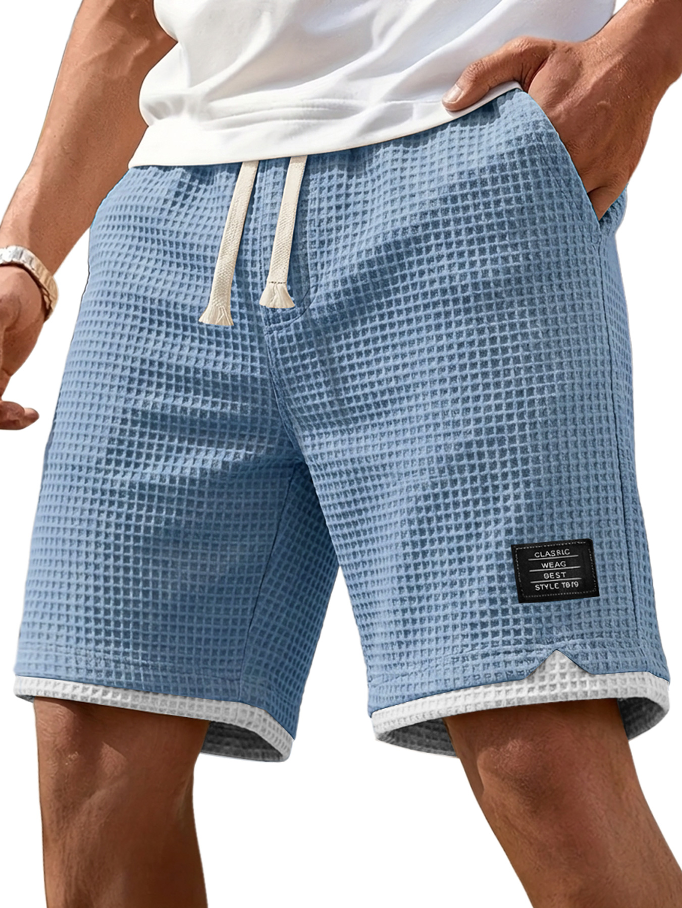 Men's Casual Waffle Color Block Embroidered Logo Loose Shorts$37.99 USD -
