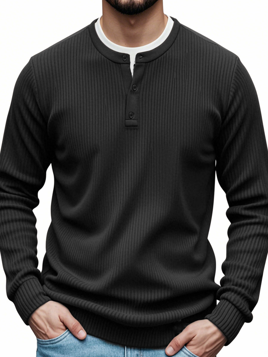 Men's Fashion Casual Retro Ribbed Fabric Long Sleeve Henley Shirt$39.99 USD -