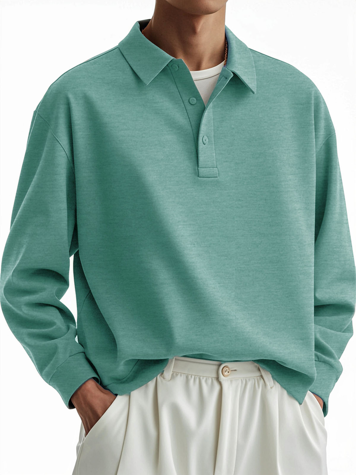 Men's Casual Lapel Button Solid Color Long Sleeve POLO Shirt$39.99 USD -