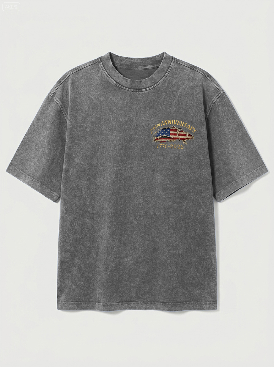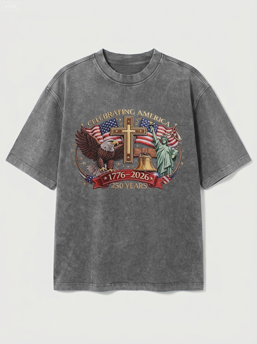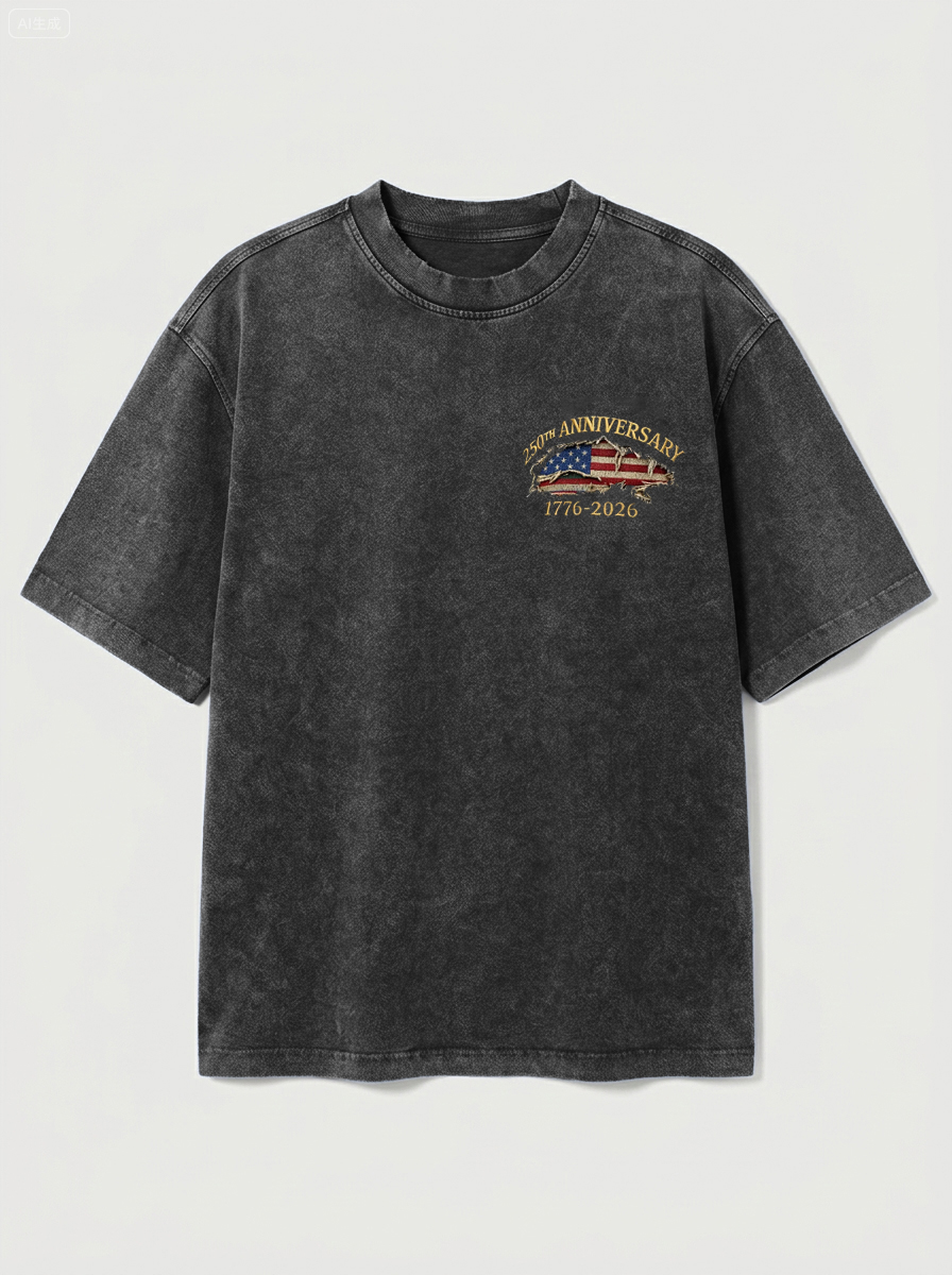 100% Cotton Vintage Washed & Distressed USA 250th Anniversary Crew Neck Short-Sleeve T-Shirt$38.99 USD -