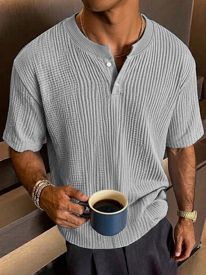 Men's Everyday Casual Textured Short-Sleeve Henley Shirt$39.99 USD -