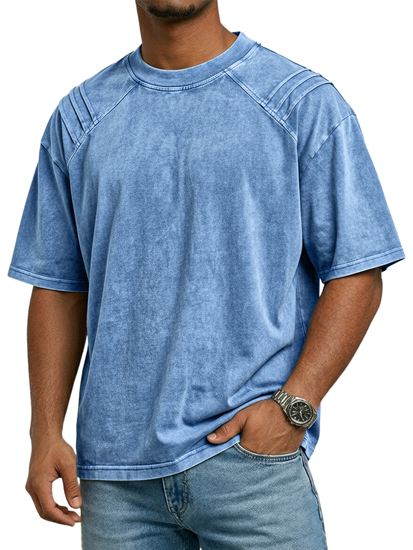 Men's Retro Crew Neck Deconstructed Casual Short-Sleeve T-Shirt$39.99 USD -