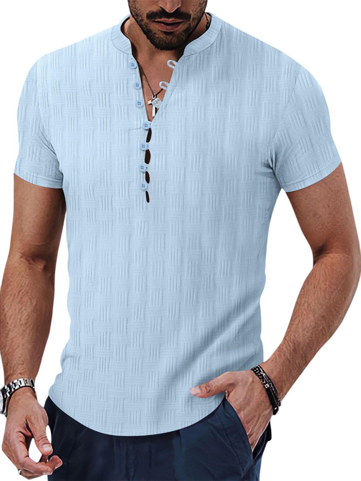 Men's Retro Simple Solid Color Short Sleeve Henley Shirt$39.99 USD