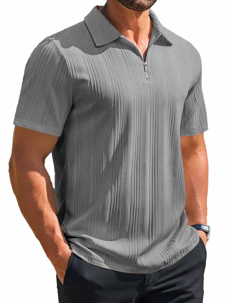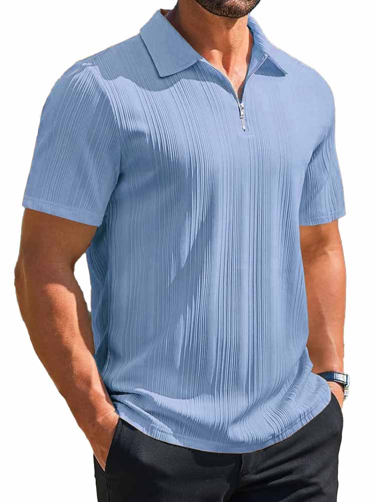 Men's Fashion Casual Pitted Fabric Lapel Short-Sleeved Polo Shirt$39.99 USD -