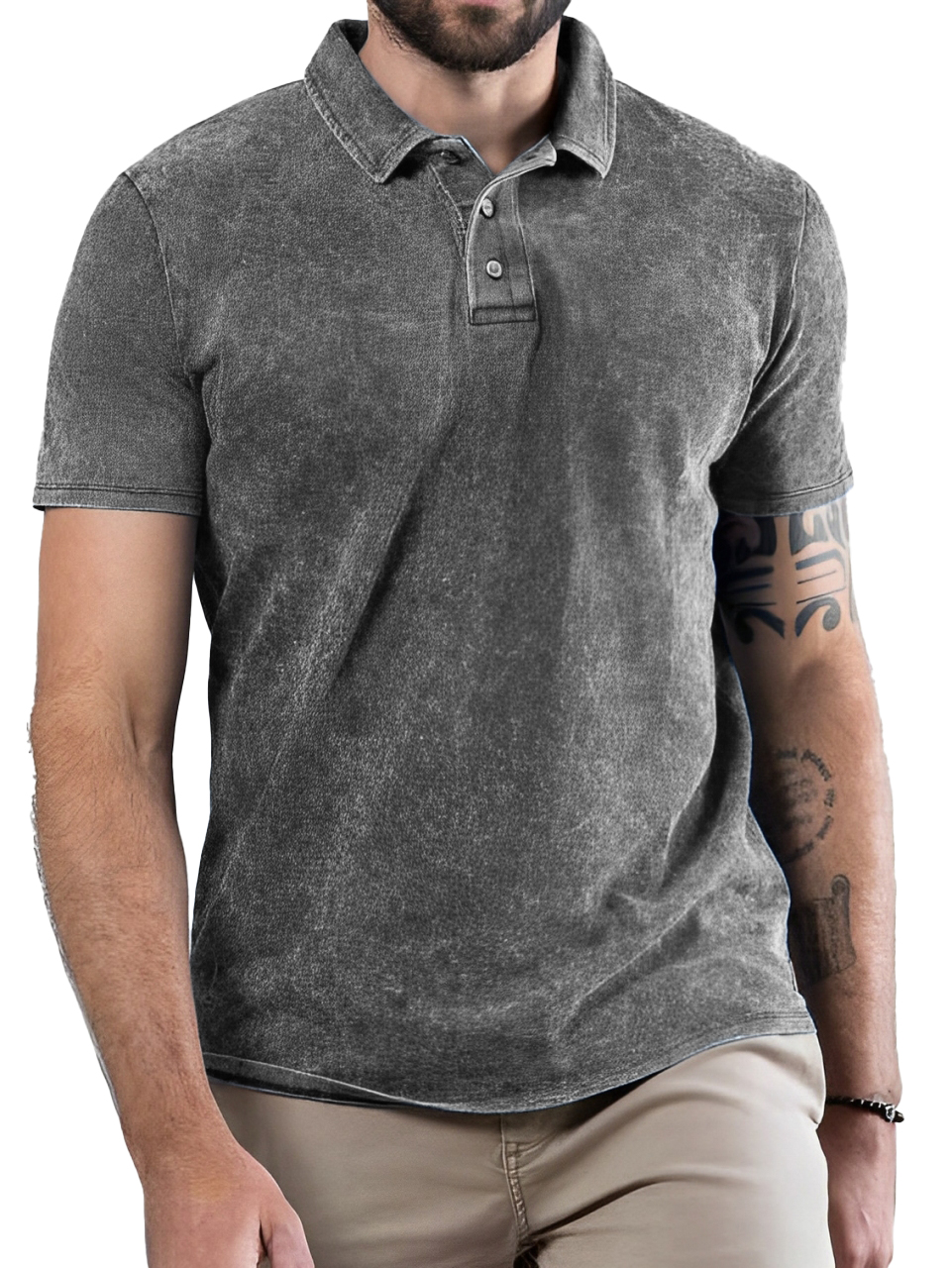 Men's Fashion Retro Distressed Washed Short Sleeve Polo Shirt$39.99 USD -