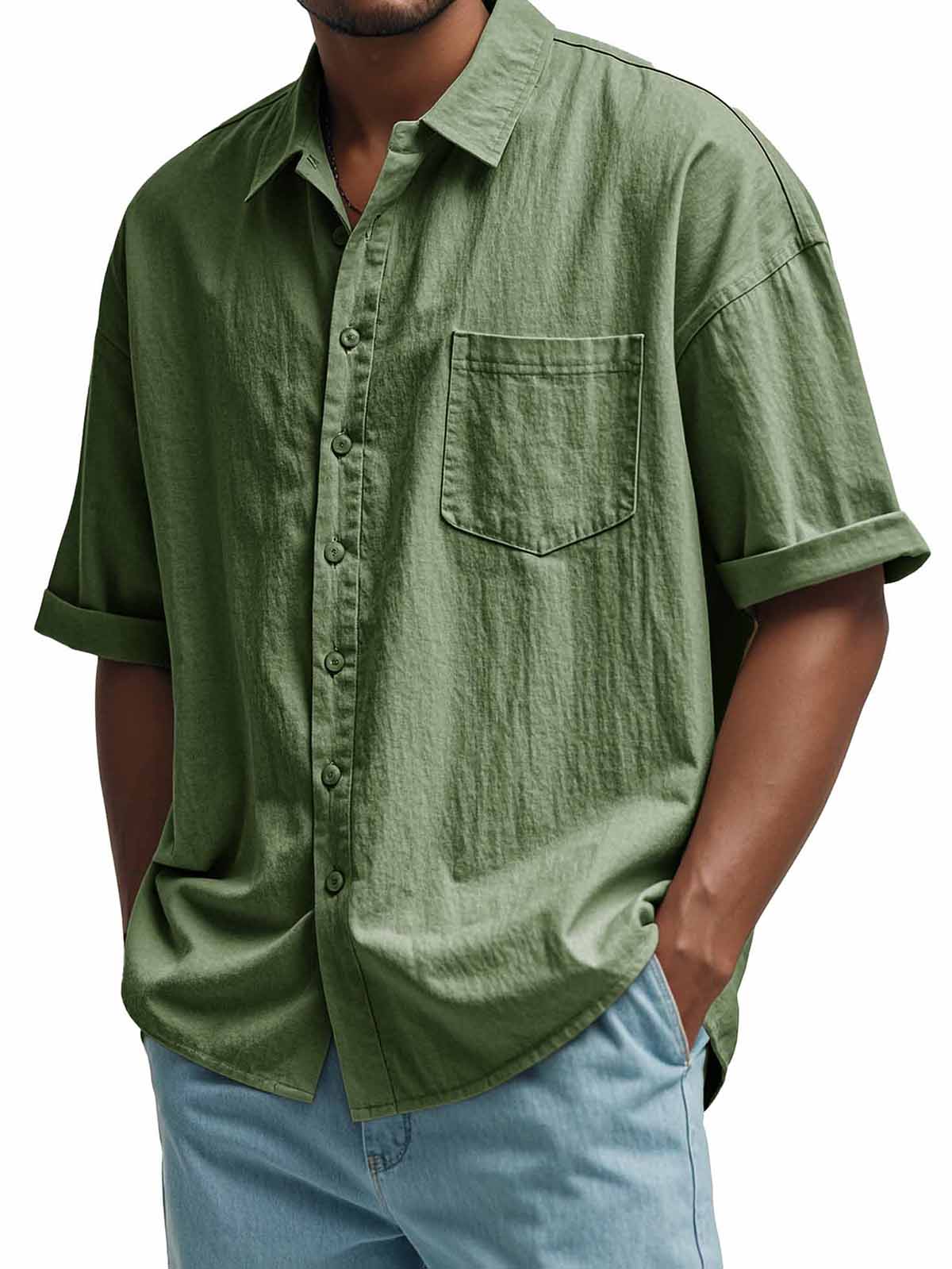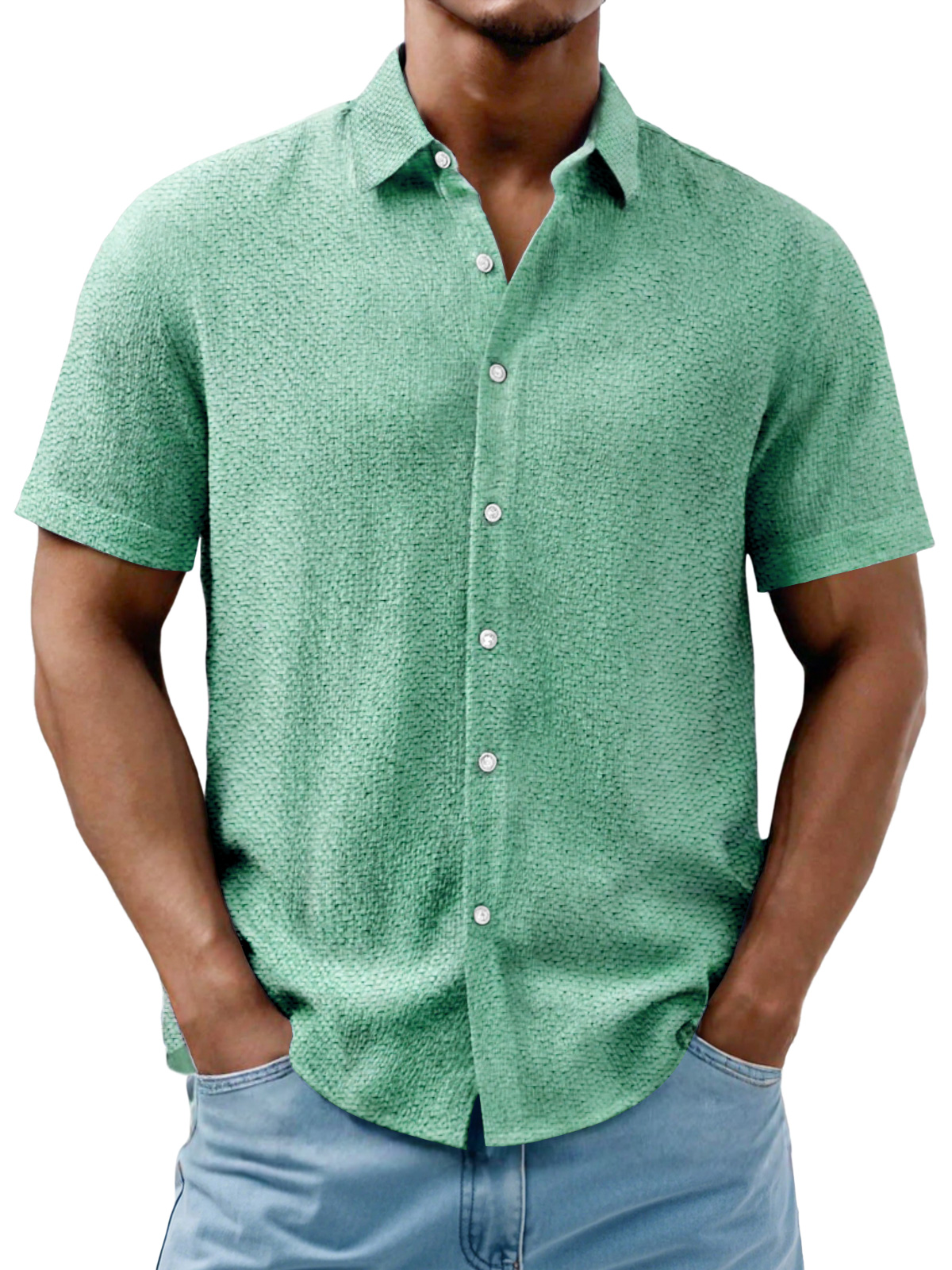 Men's Daily Casual Texture Solid Color Comfortable Short-sleeved Shirt$39.99 USD -