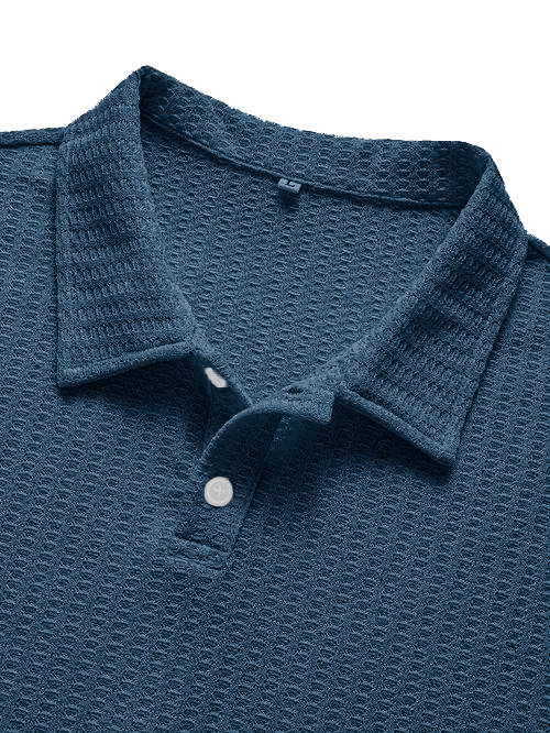 Men's Fashionable Retro Waffle Fabric Short Sleeve Polo Shirt$39.99 USD -
