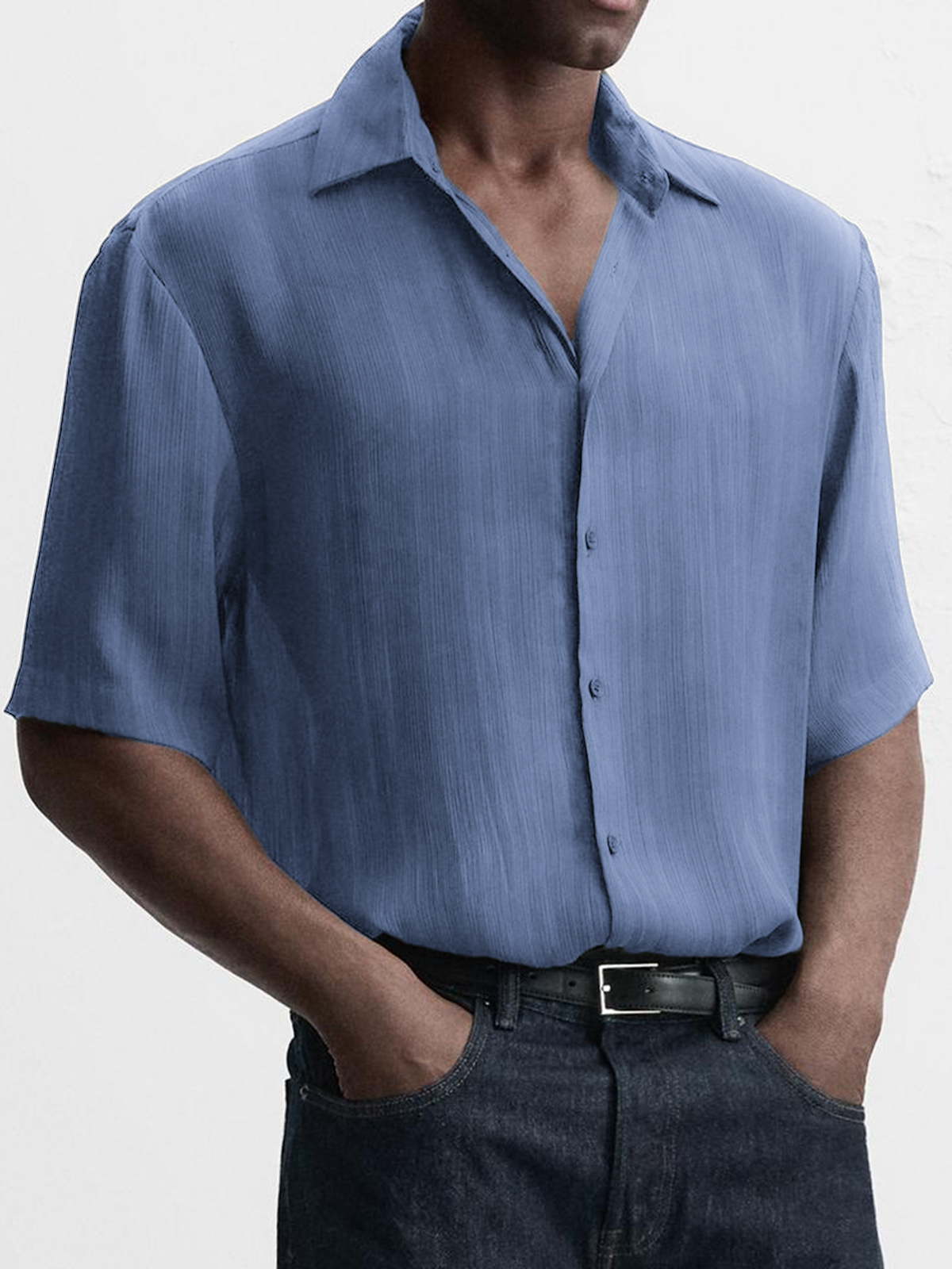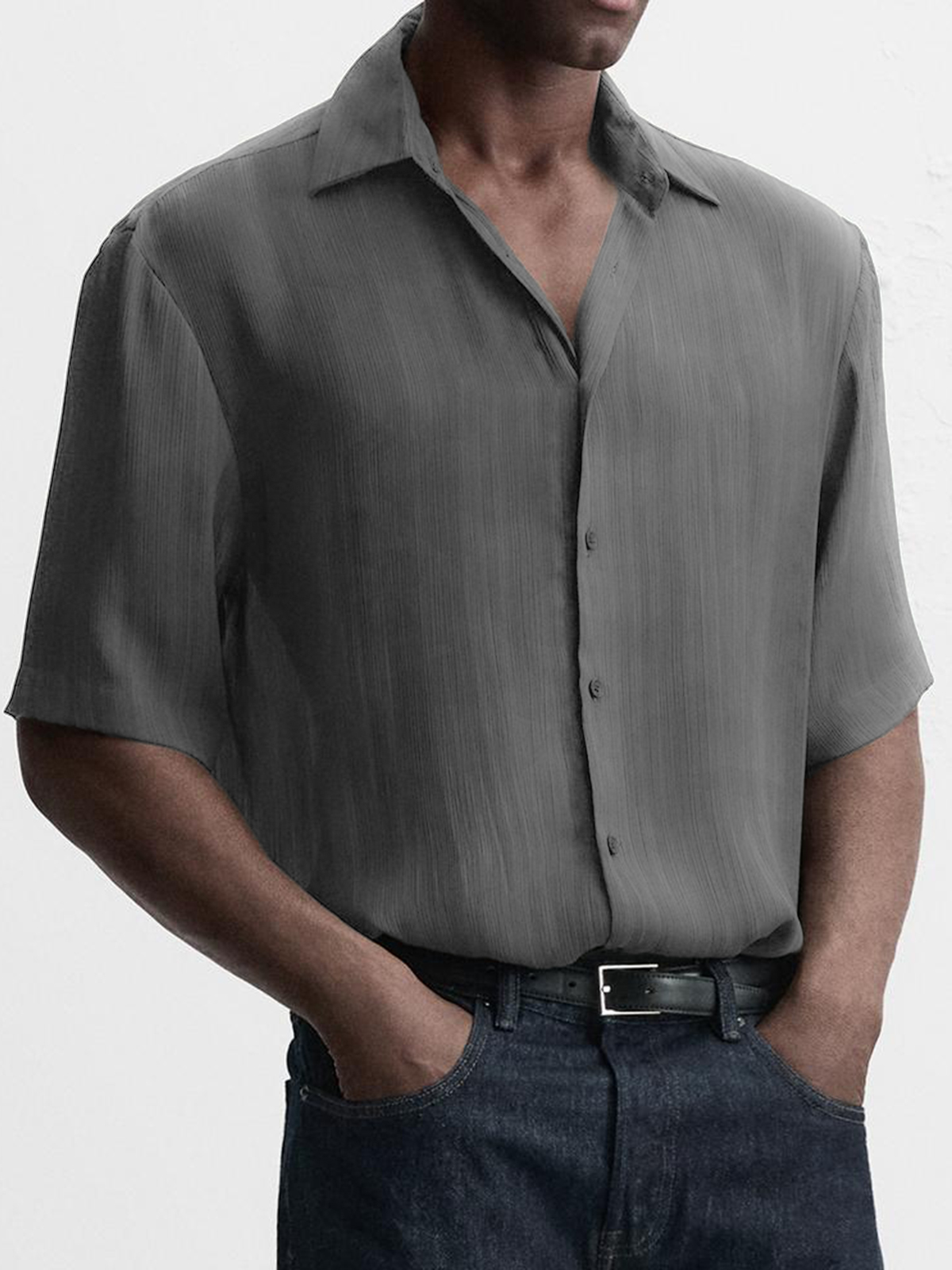 Men's Breathable Textured Casual Short Sleeve Basic Shirt$39.99 USD -