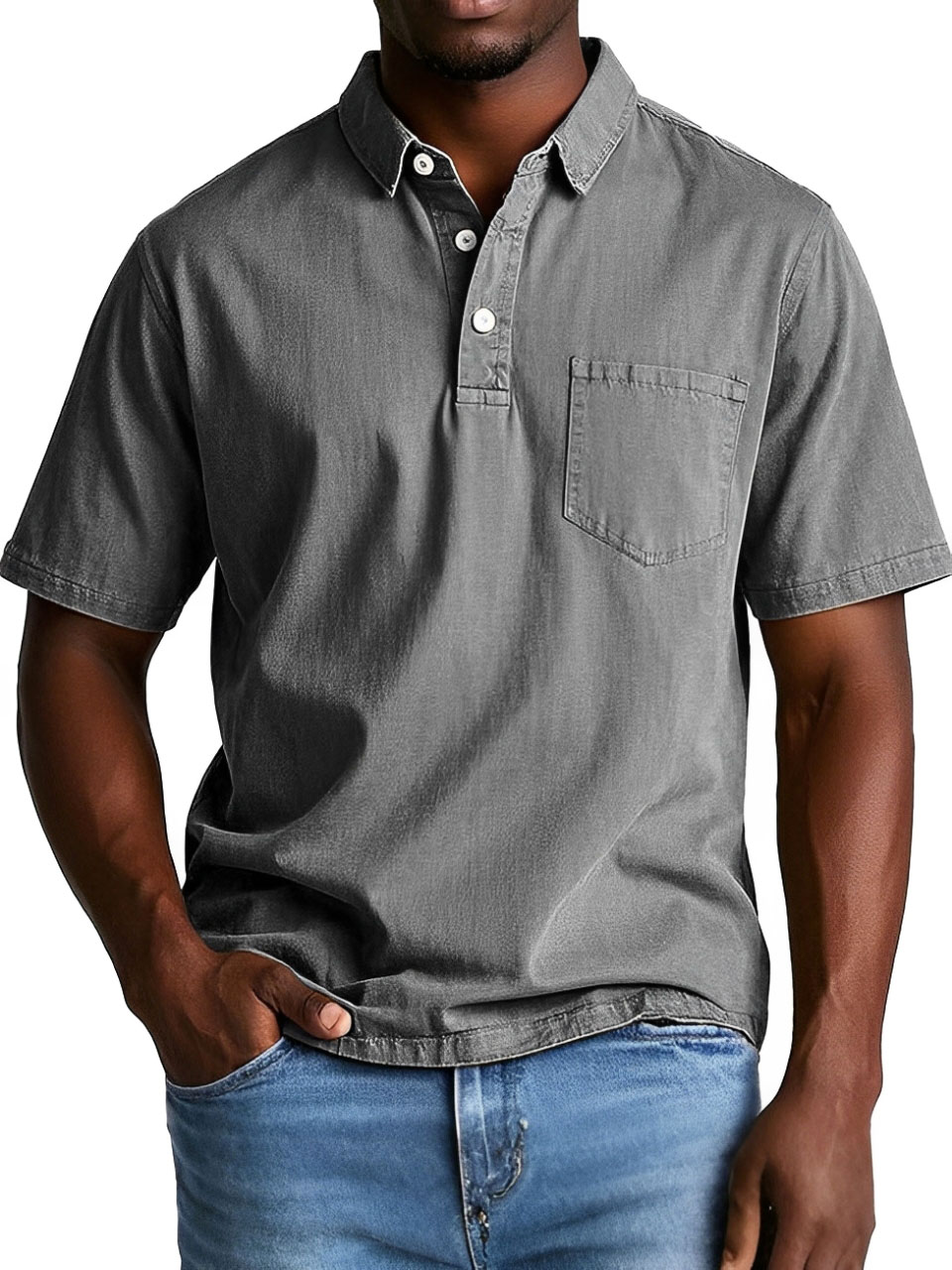 Men's Fashion Retro Distressed Lapel Pocket Short Sleeve Polo Shirt$39.99 USD -
