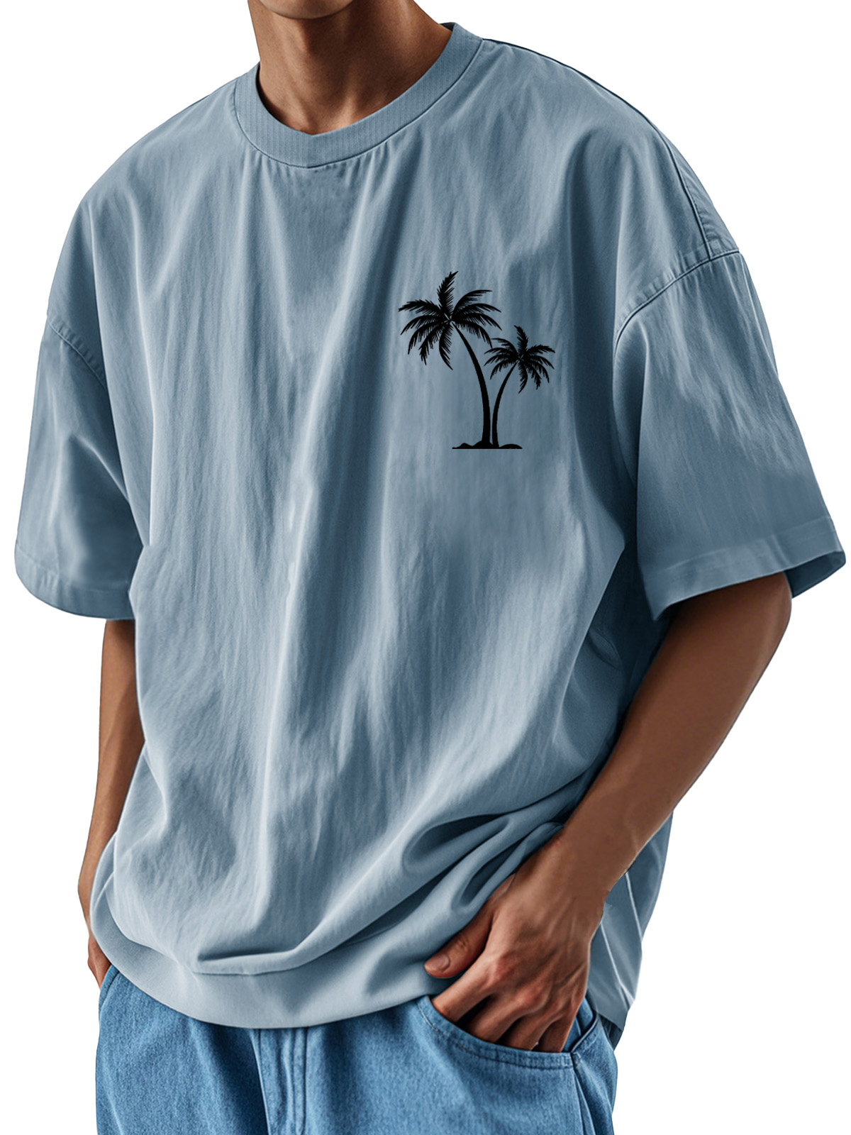 Men's Fashion Casual Loose Pocket Coconut Print Short Sleeve T-Shirt$39.99 USD -