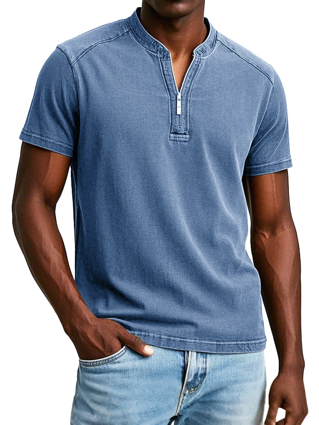 Men's Fashion Vintage Distressed Short Sleeve Henley Shirt$39.99 USD -