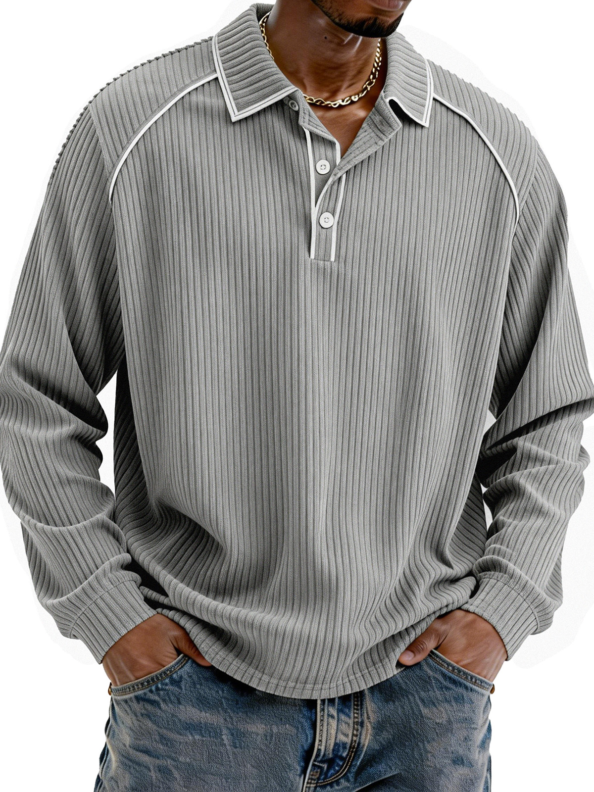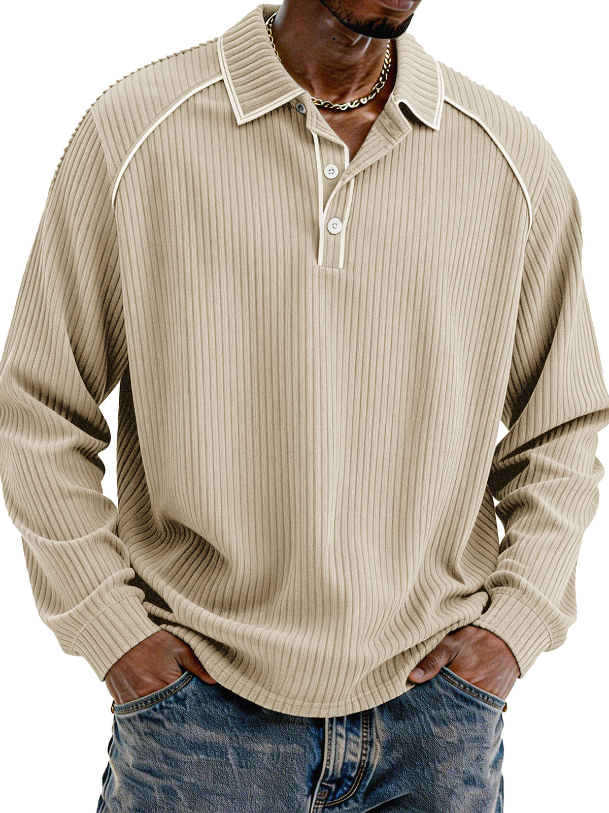 Stylish Casual Loose Corduroy Fabric Lapel Long-sleeved Polo Shirt$42.99 USD -