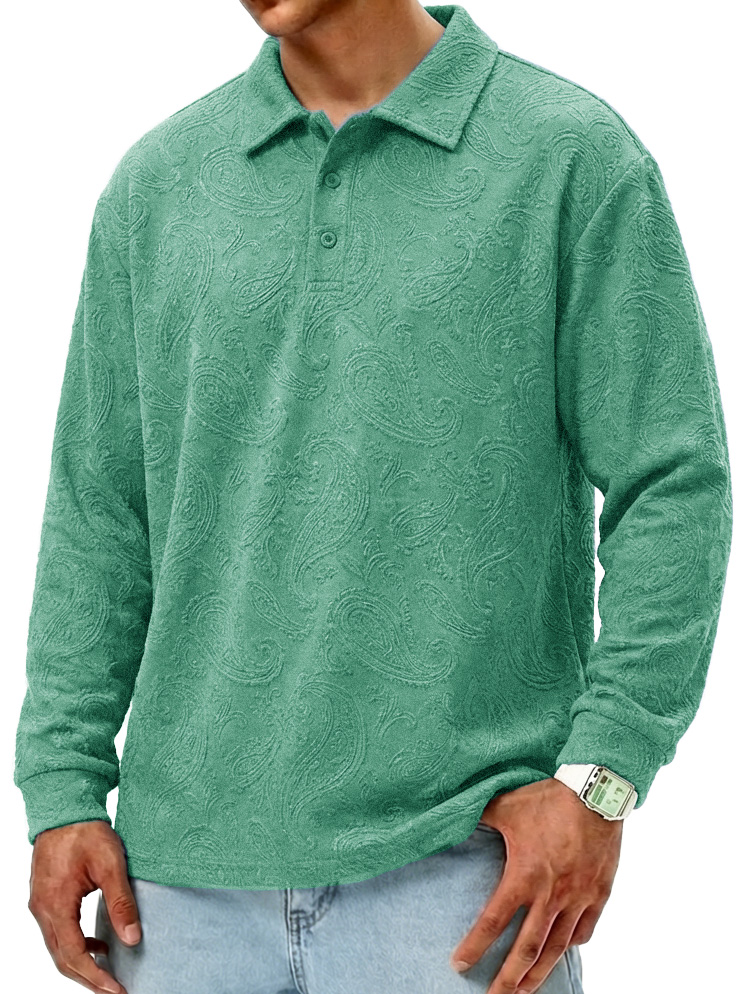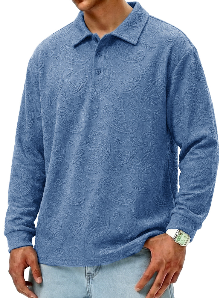 Men's Fashionable Retro Paisley Fabric Loose-Fit Collar Polo Shirt$42.99 USD