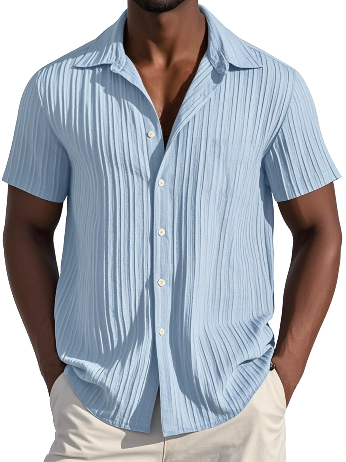 Men's Casual Vacation Breathable And Comfortable Pleated Short-sleeved Shirt$38.99 USD -