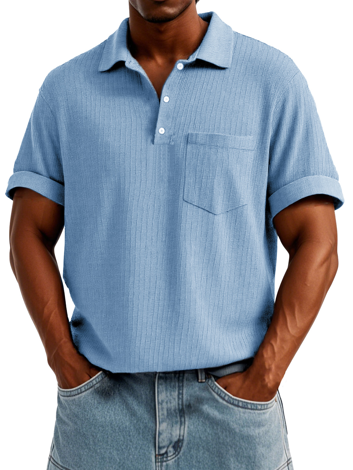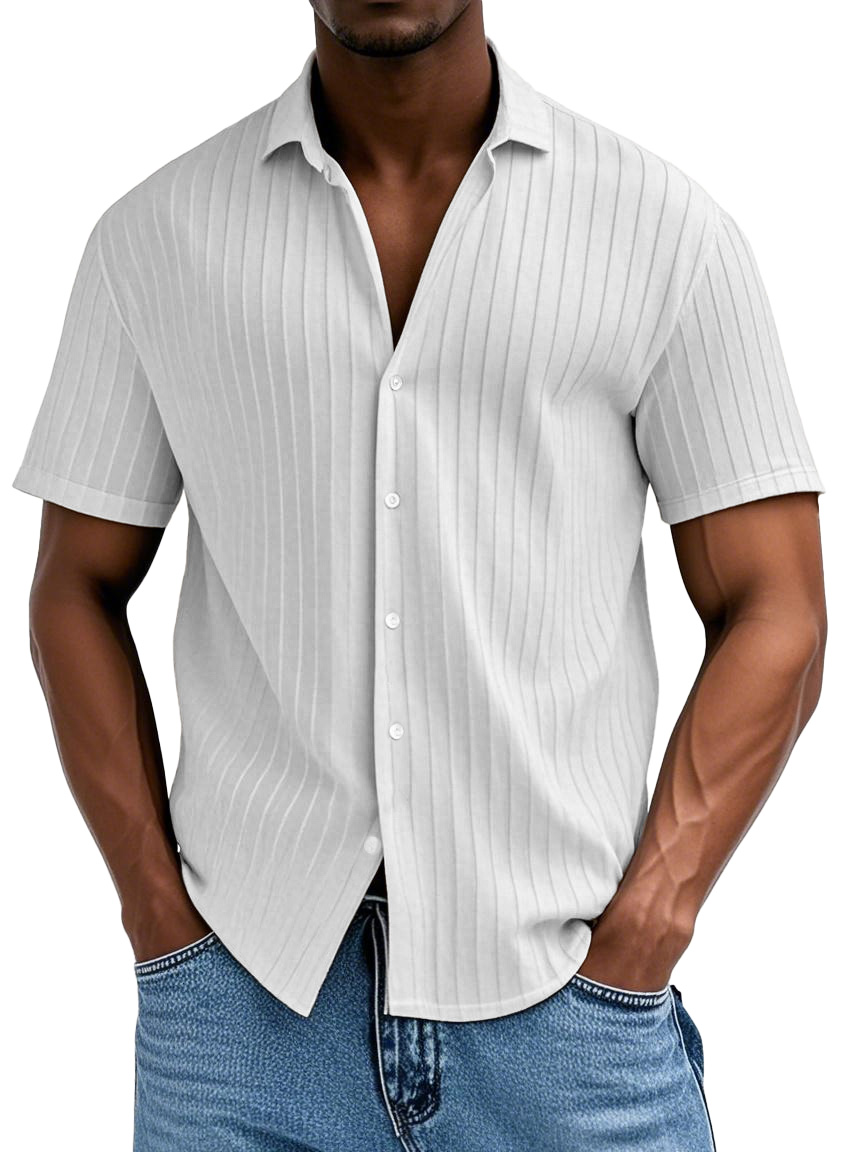 Men's Everyday Ribbed Casual Lapel Comfortable Short Sleeve Shirt$39.99 USD -
