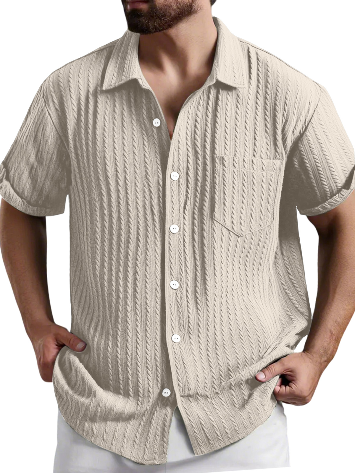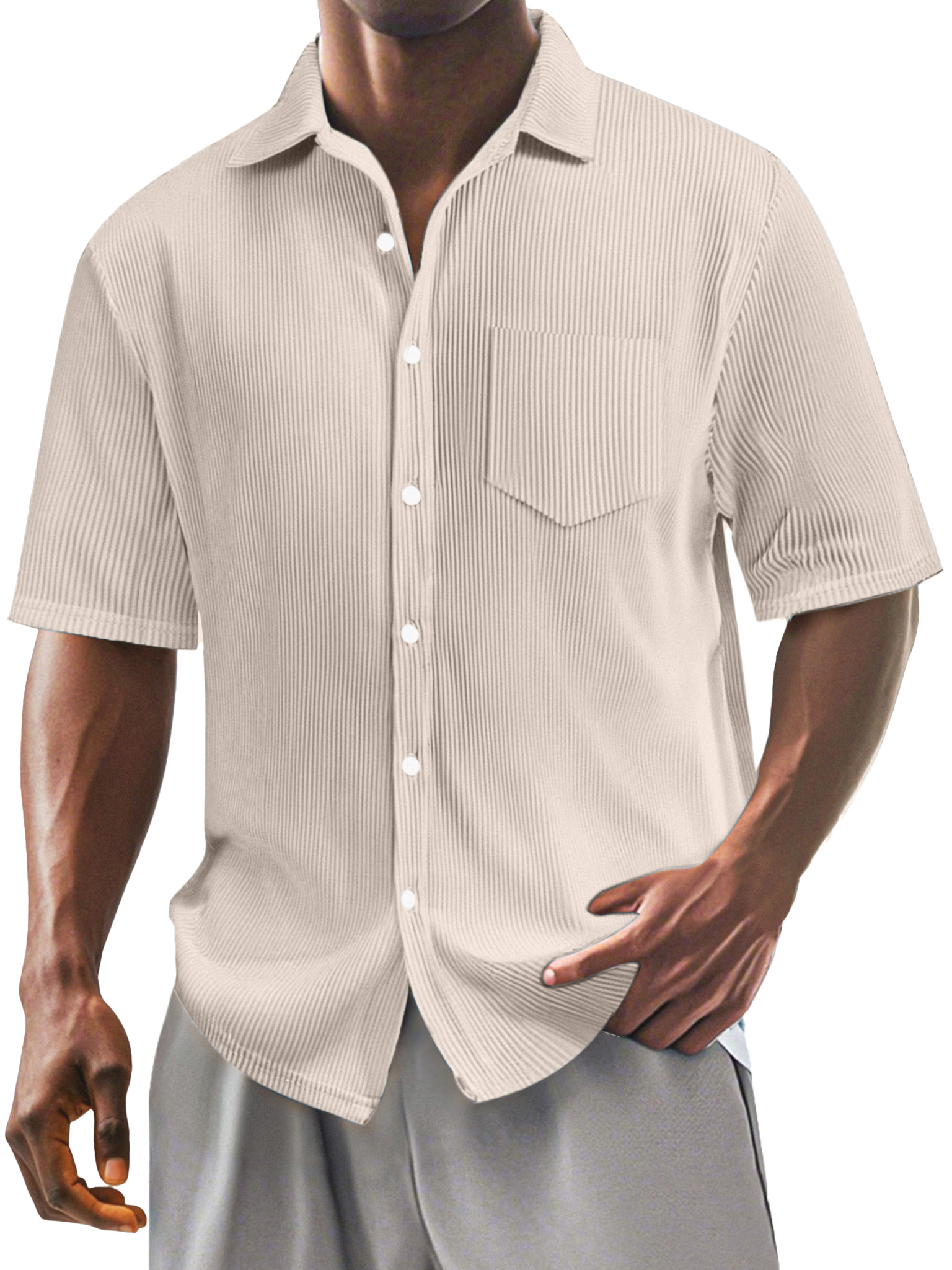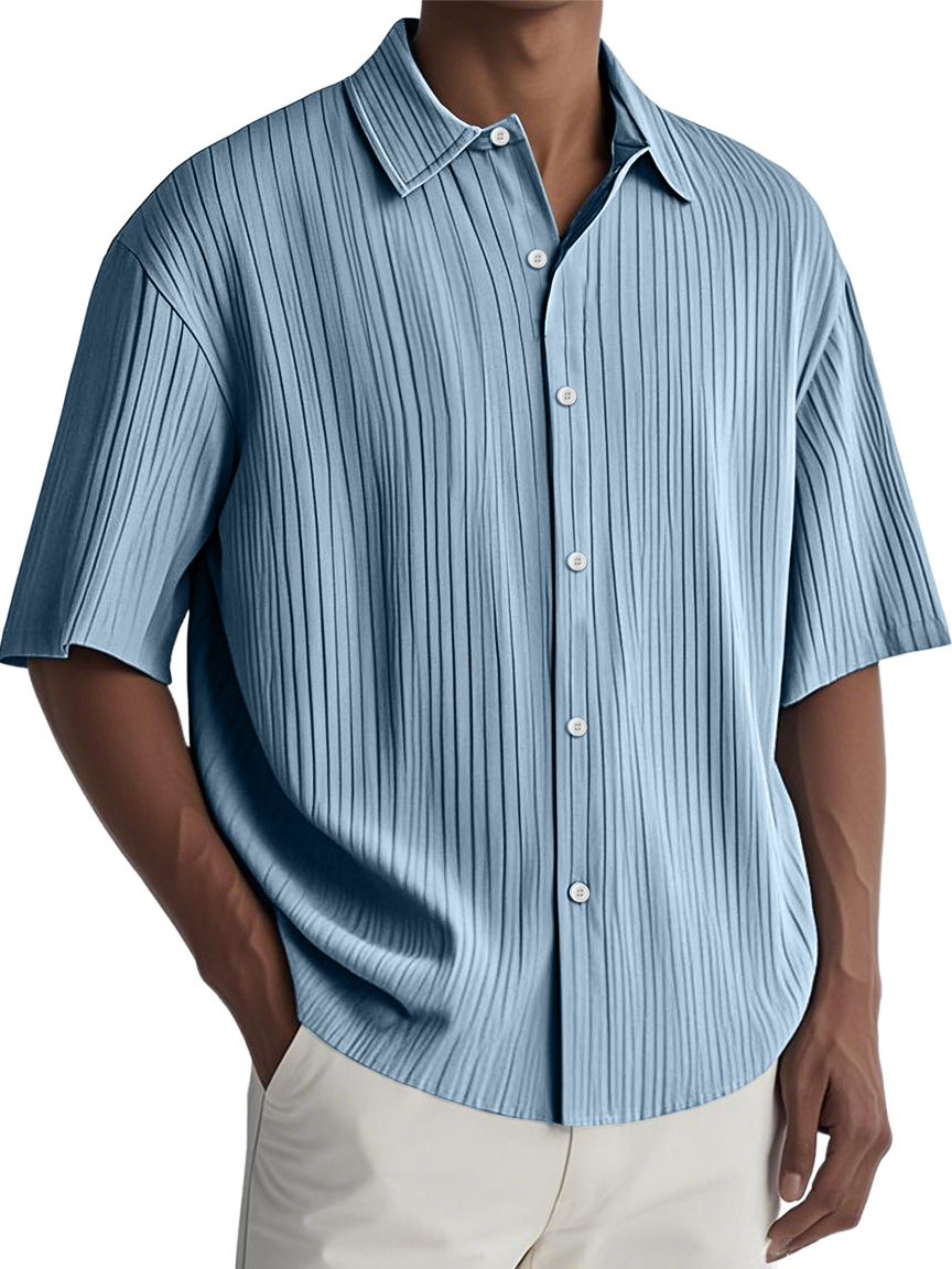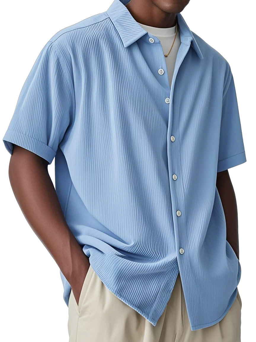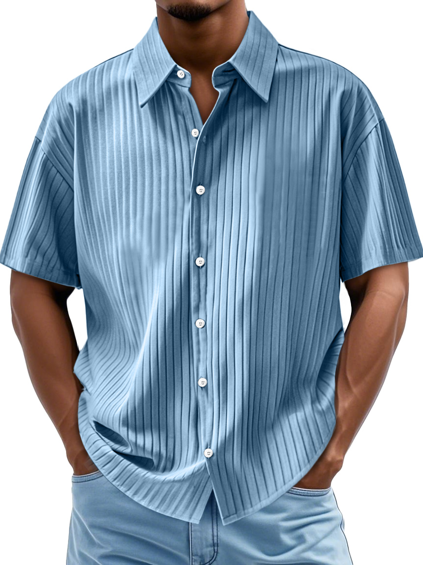 Men's Fashion Casual Short-sleeved Shirt With Ribbed Fabric$39.99 USD -