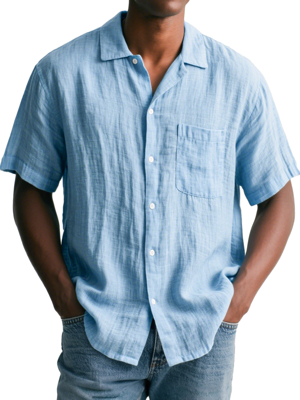 Men's Daily Cotton and Linen Casual Lapel Pocket Comfortable Short Sleeve Shirt$39.99 USD -