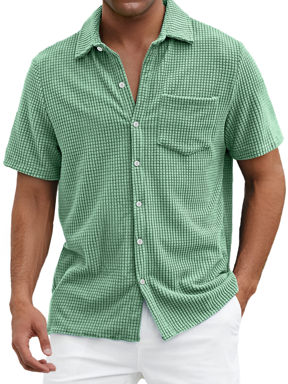 Men's Daily Waffle Texture Casual Pocket Comfort Short Sleeve Shirt$39.99 USD -