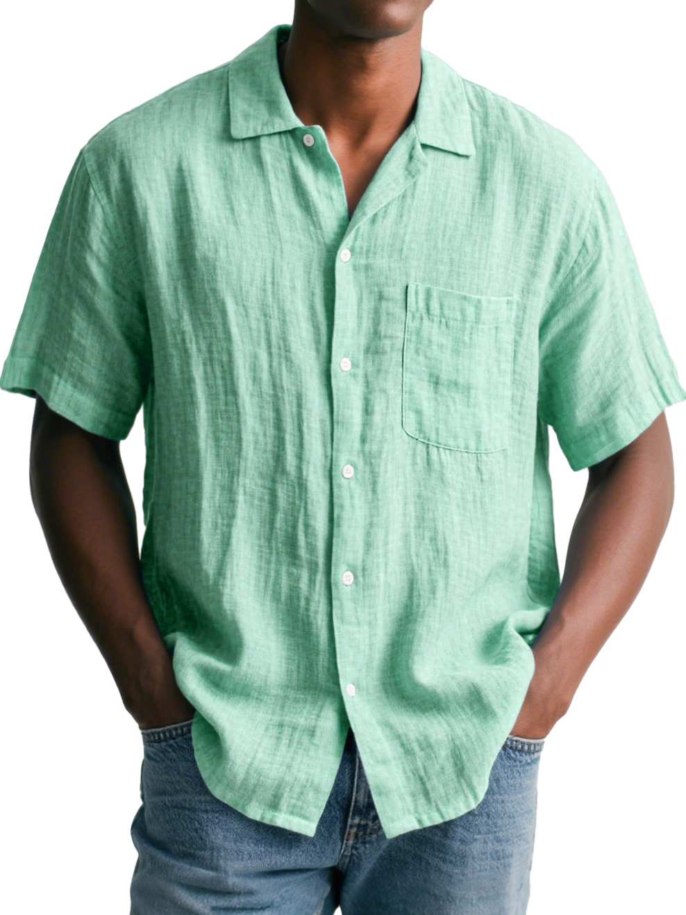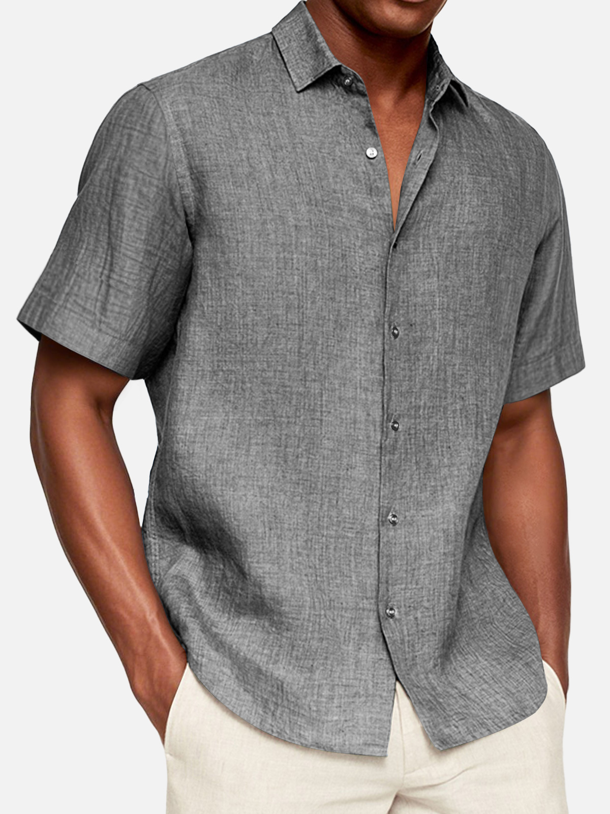 Men's Casual Cotton And Linen Short-sleeved Shirt$39.99 USD -