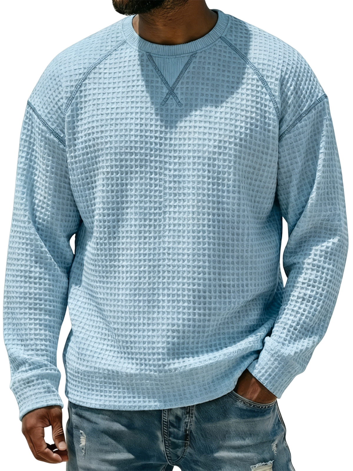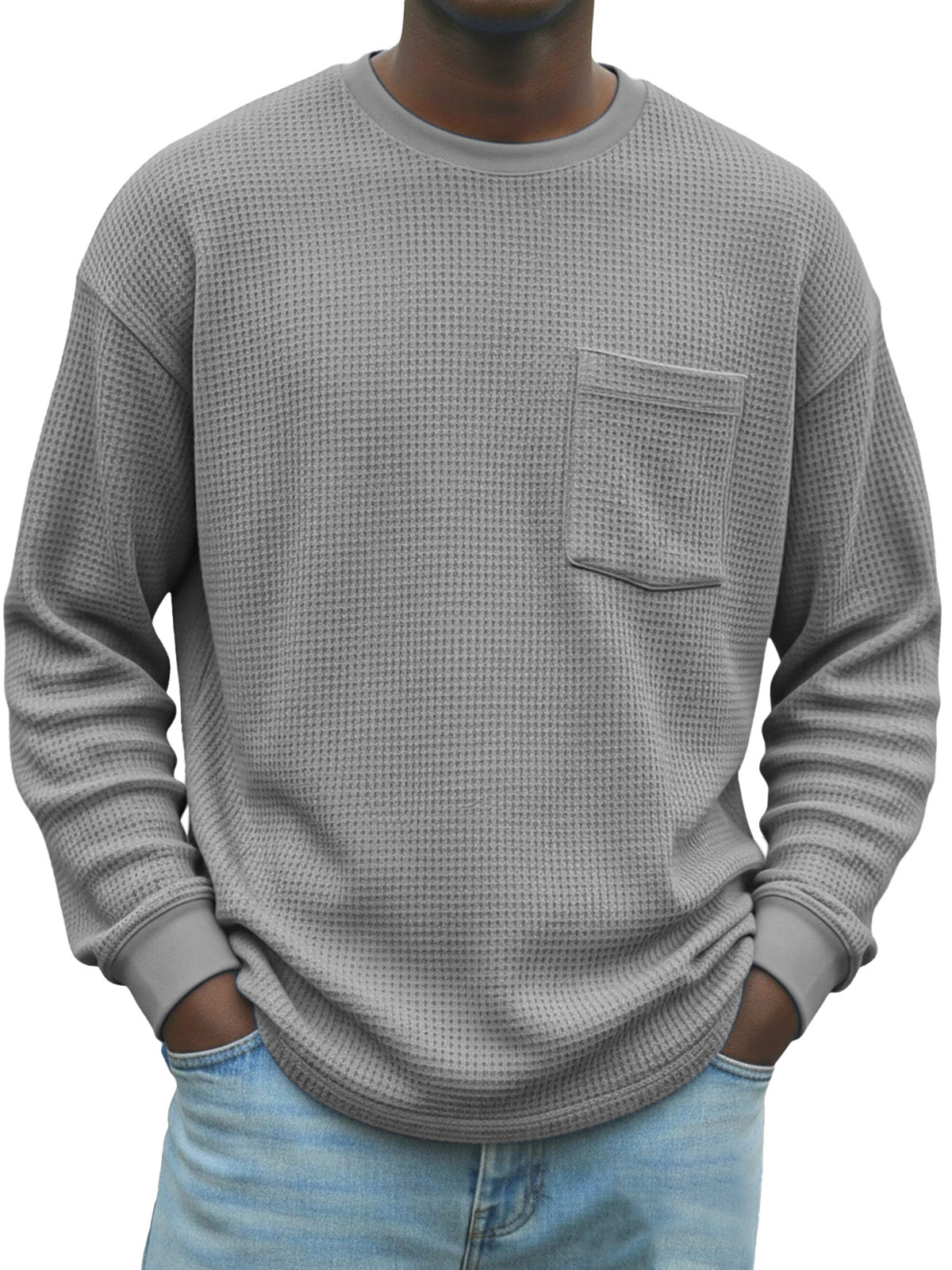 Men's Stylish Waffle-knit Pocket Long-sleeved Crew Neck T-shirt$39.99 USD -