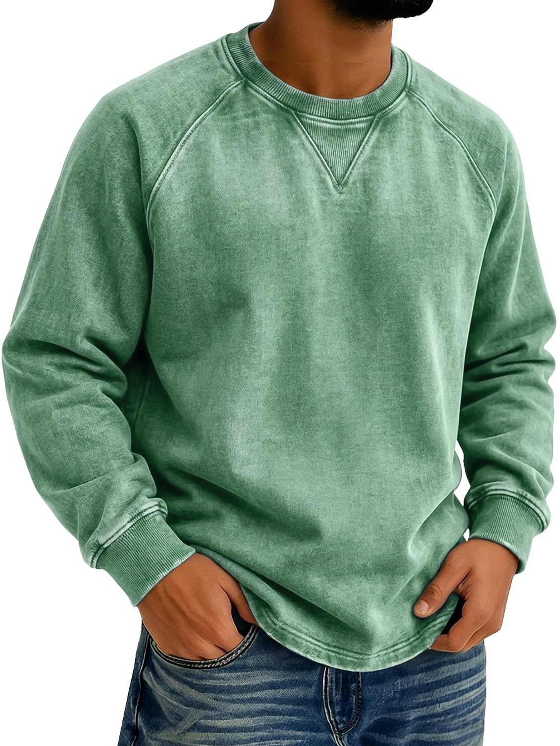Men's Vintage-style Crew Neck Casual Long-sleeved T-shirt With Raglan Sleeves$42.99 USD -