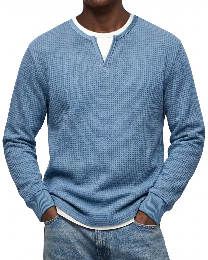 Men's Casual Urban V-neck Faux Two-Piece Waffle Knit Crew Neck Long-Sleeve T-Shirt$42.99 USD -