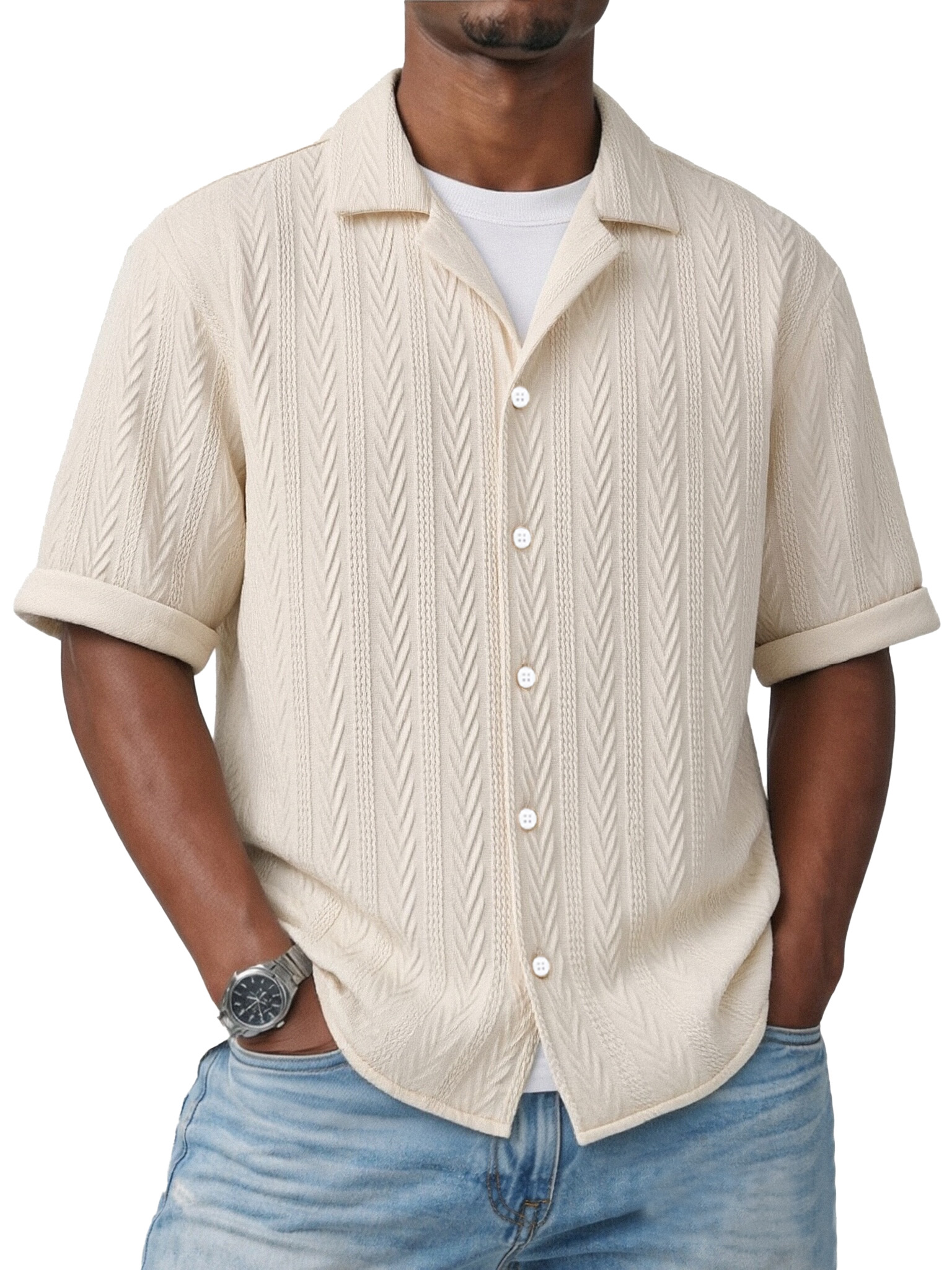 Simple Everyday Textured Short-sleeved Cuban Collar Shirt$39.99 USD -