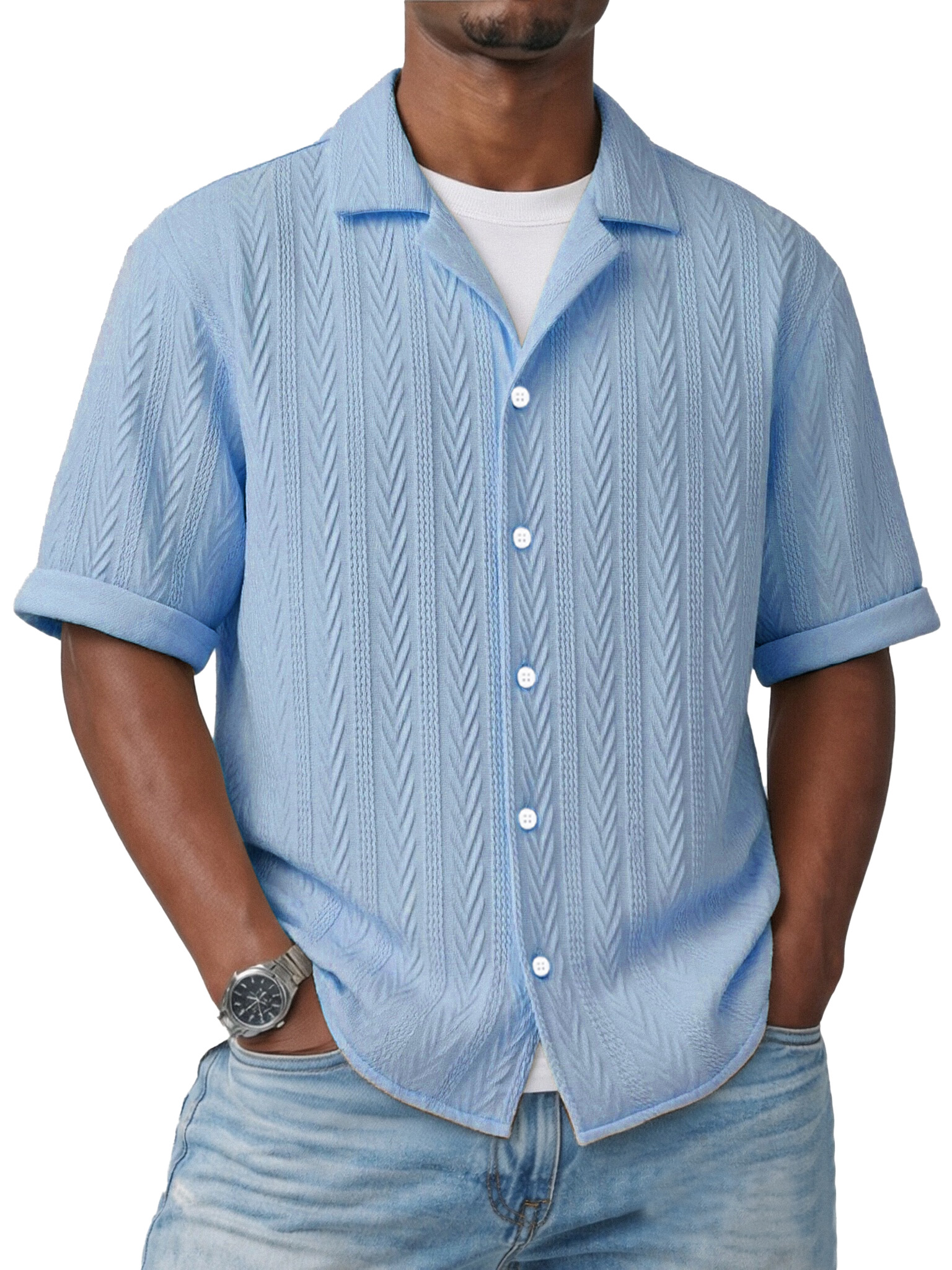 Men's Solid Color Casual Textured Lapel Short-Sleeve Shirt$39.99 USD -