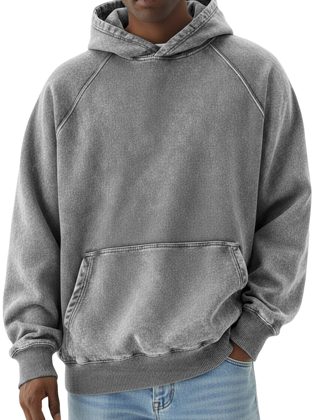 Men's Retro Fashion Distressed Raglan Sleeve Pocket Hooded Sweatshirt$42.99 USD -