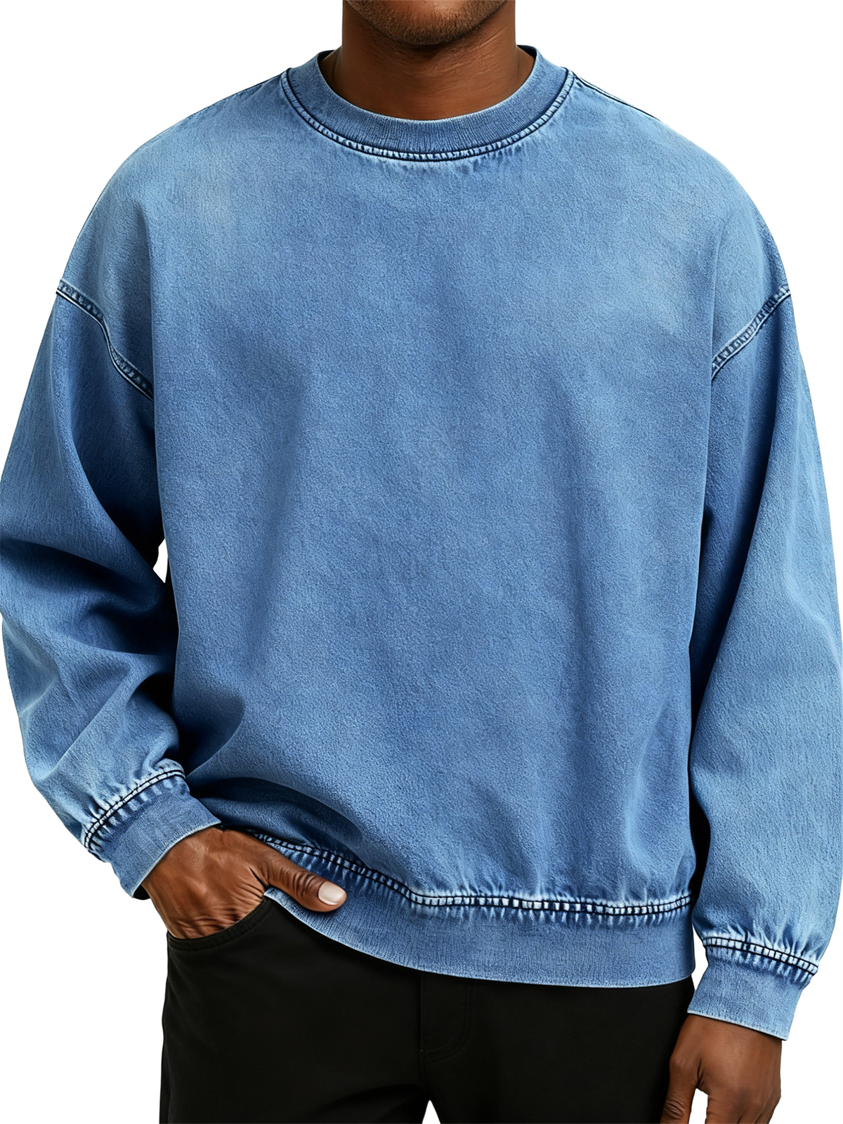 Men's Retro Fashion Distressed Crew Neck Long-Sleeve Loose Sweatshirt$42.99 USD -