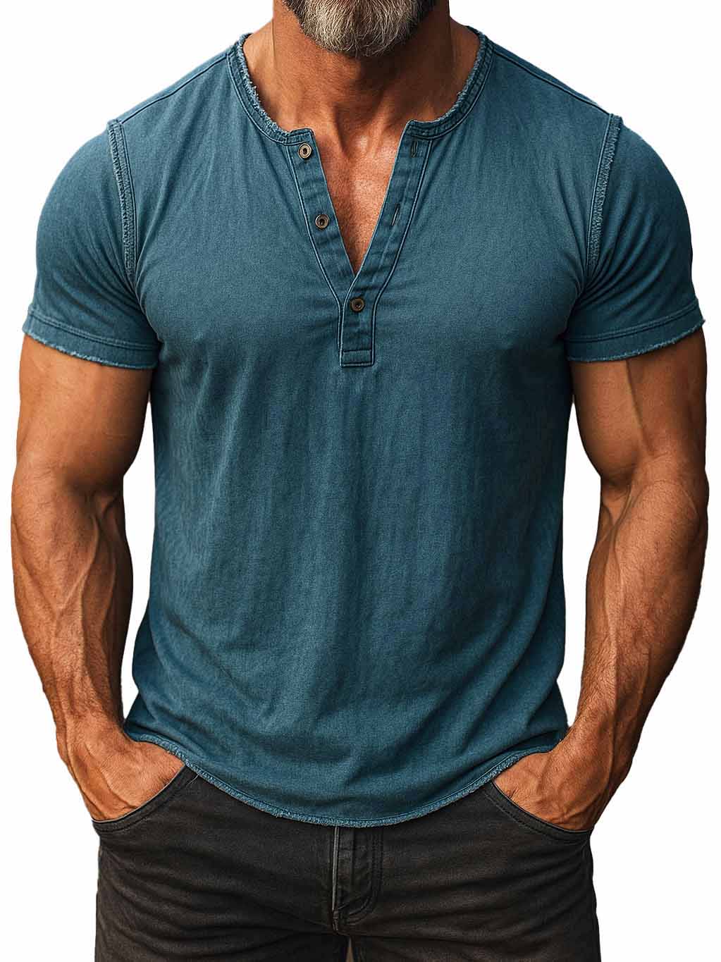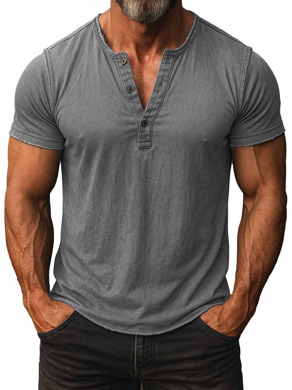 Men's Fashion Retro Distressed Short-sleeved Henley Shirt$39.99 USD -
