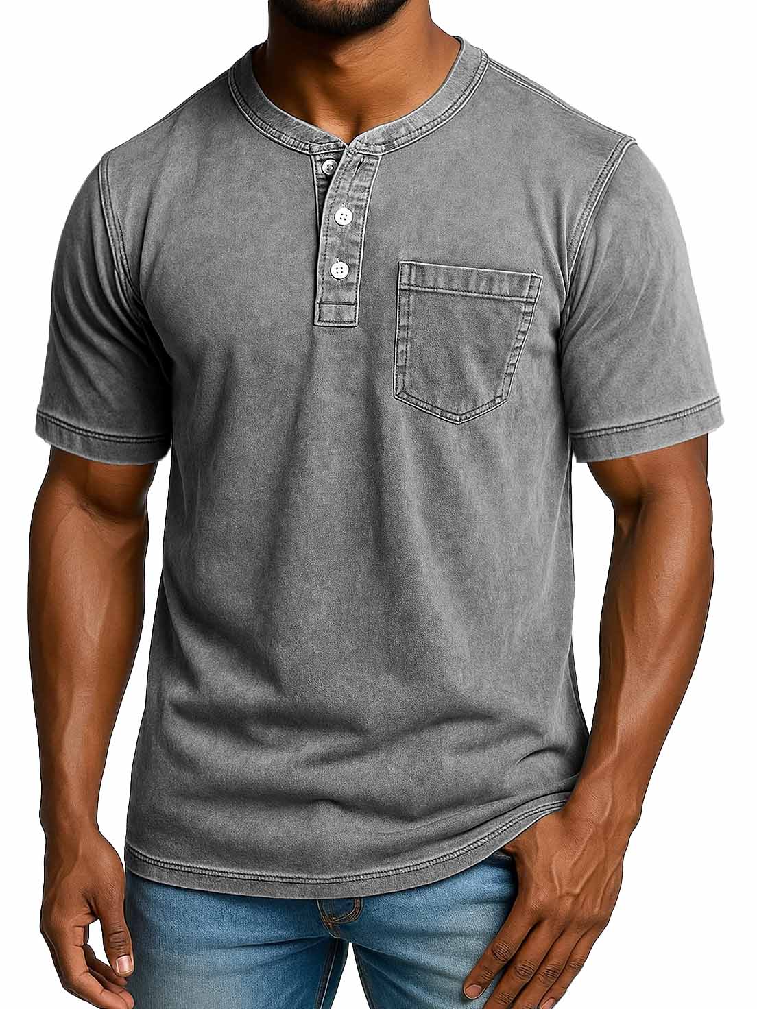 Men's Fashion Retro Distressed Short-sleeved Pocket Henley Shirt$39.99 USD -