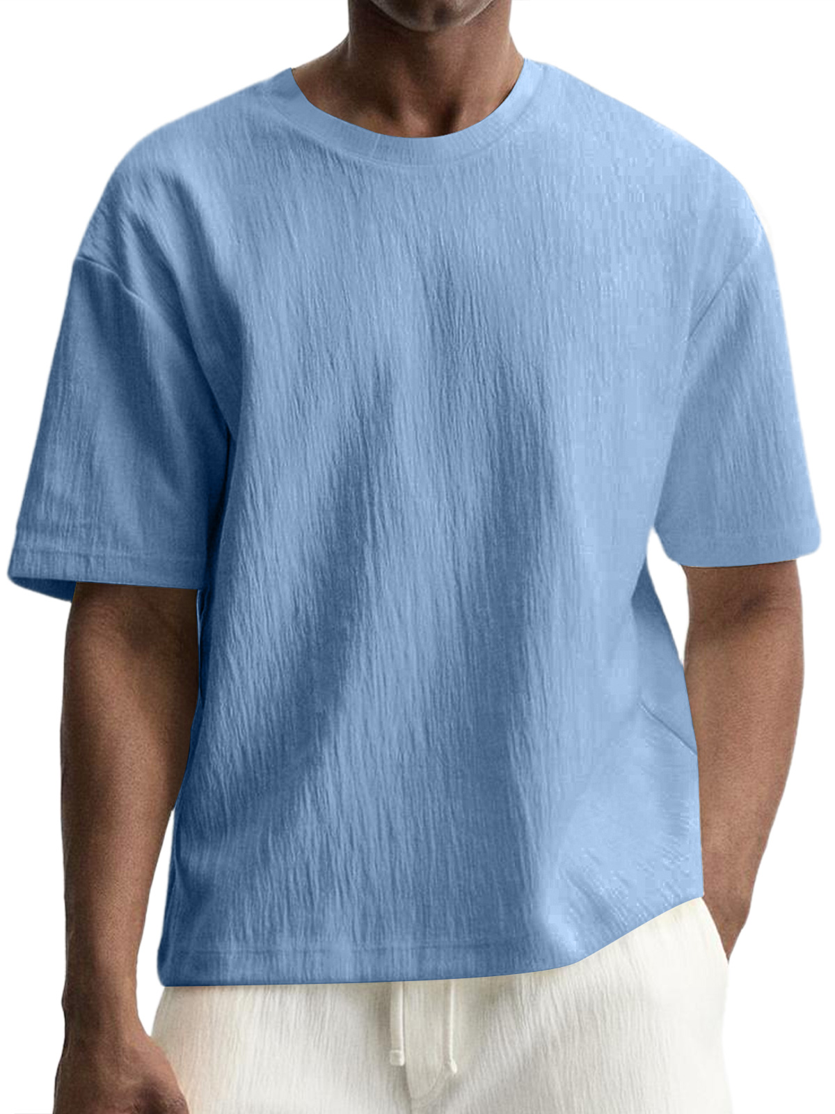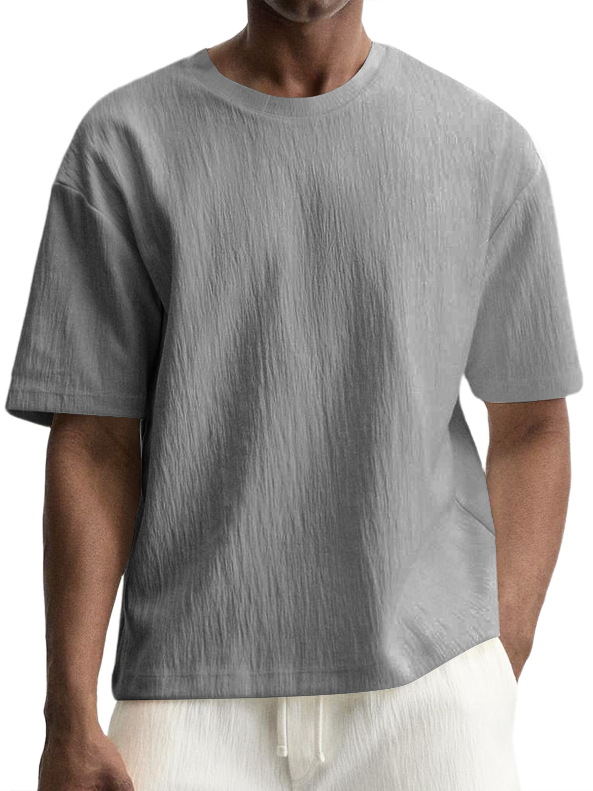 Men's Daily Round Neck Pleated Texture Casual Short-sleeved T-shirt$39.99 USD -