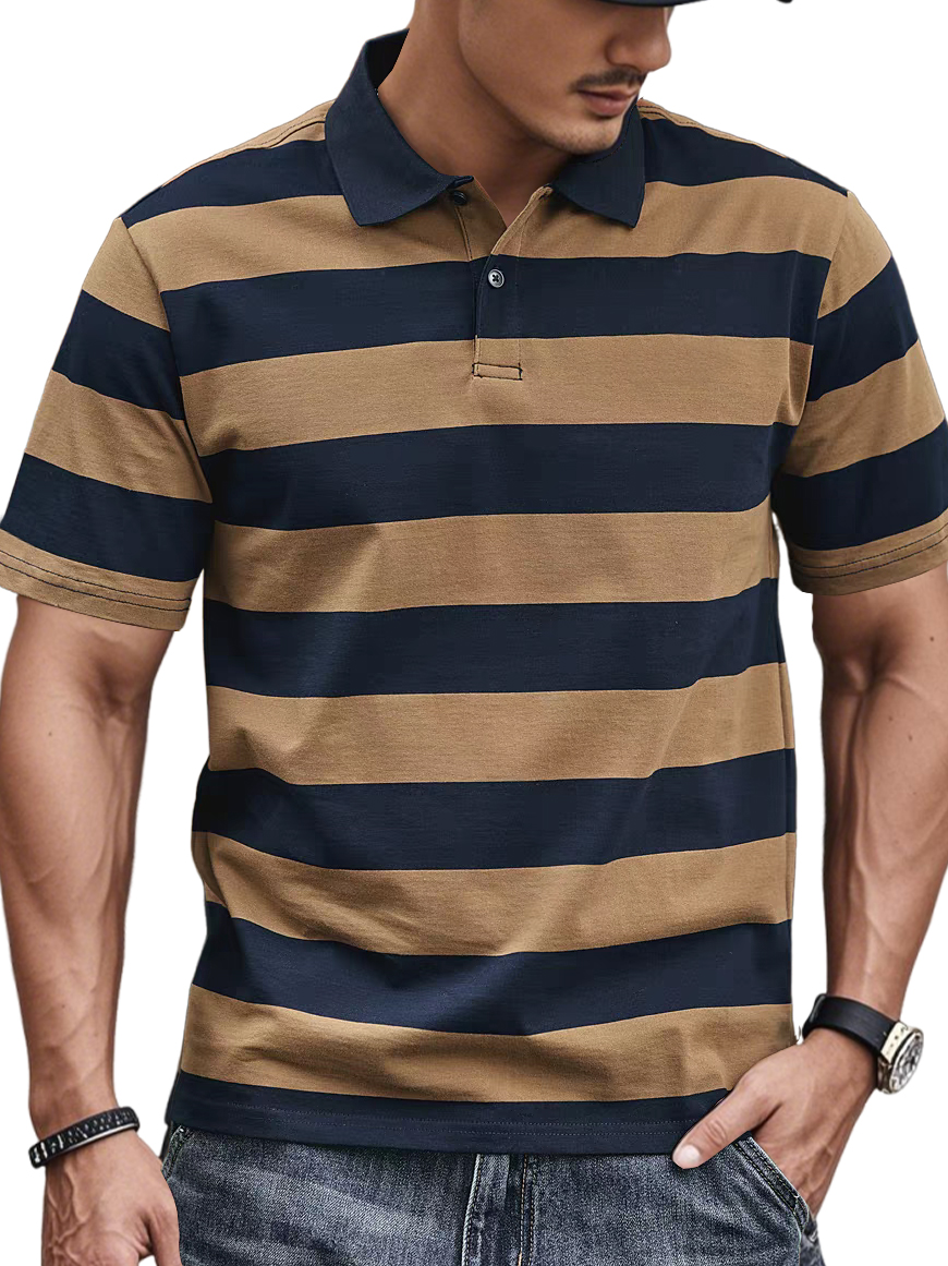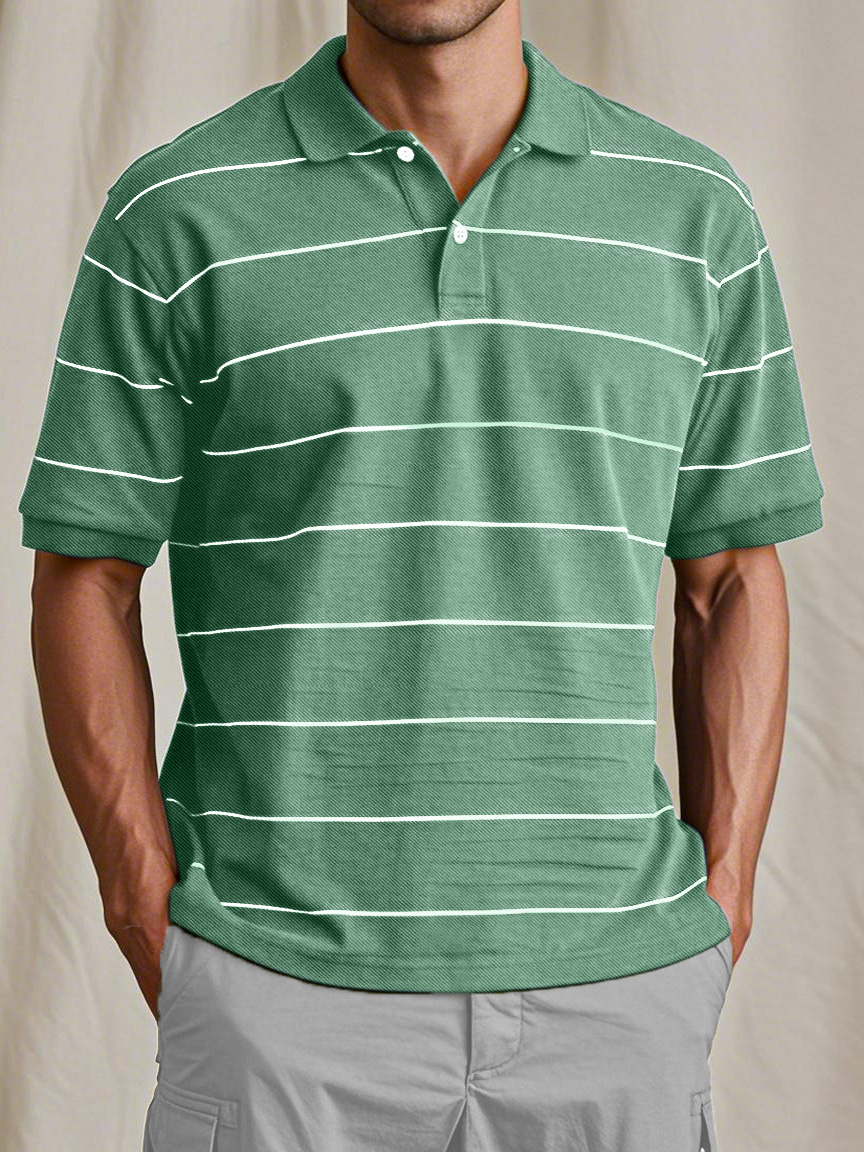 Men's Casual And Comfortable Retro Striped Short-sleeved Polo Shirt$39.99 USD -