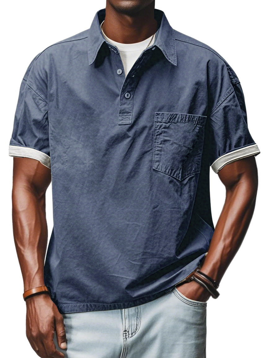Men's Retro Workwear Pocket Short-sleeved Polo Shirt$39.99 USD -