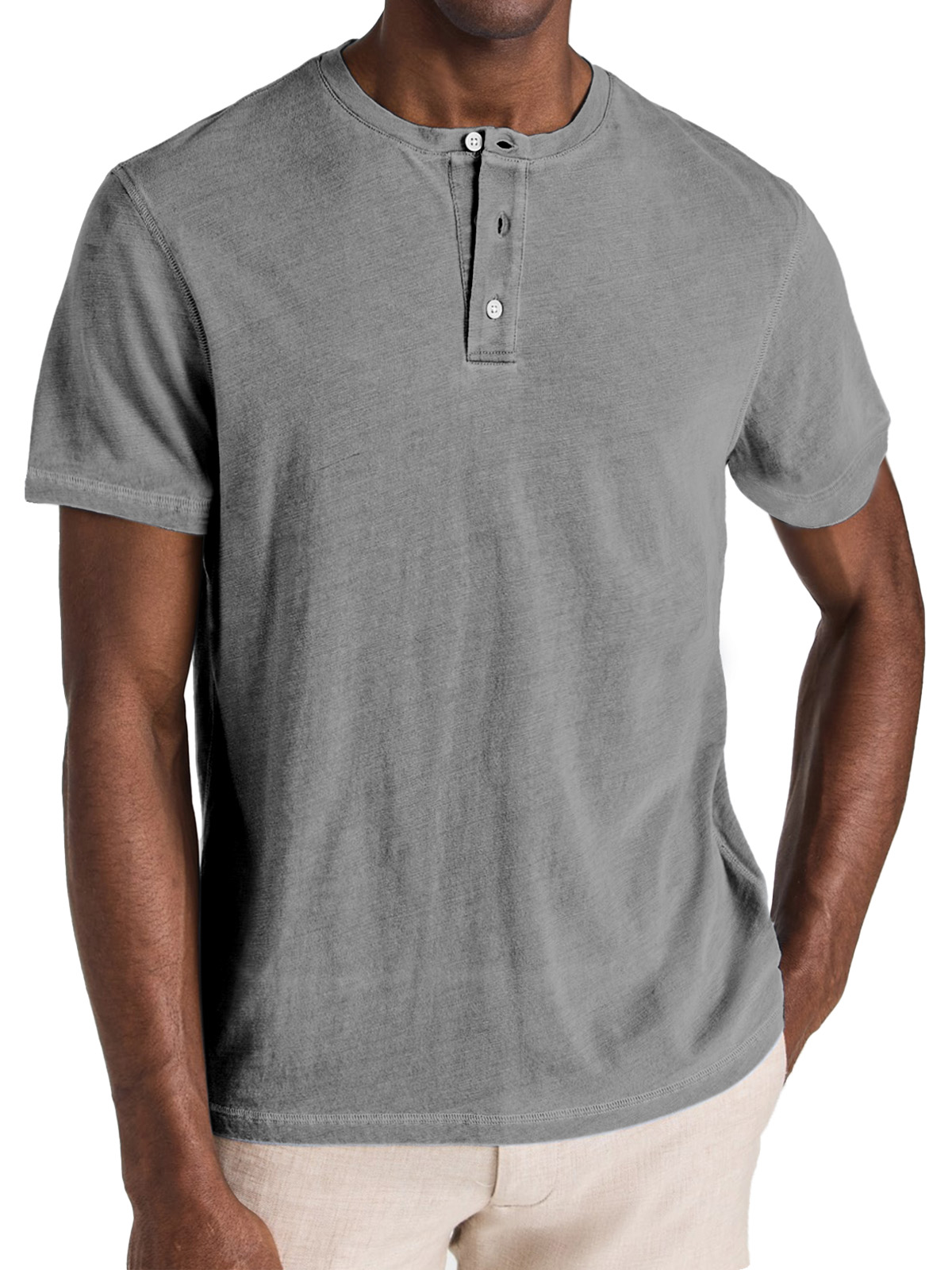 Men's Casual Vintage Solid Color Short Sleeve Button-down Henley Shirt$39.99 USD -